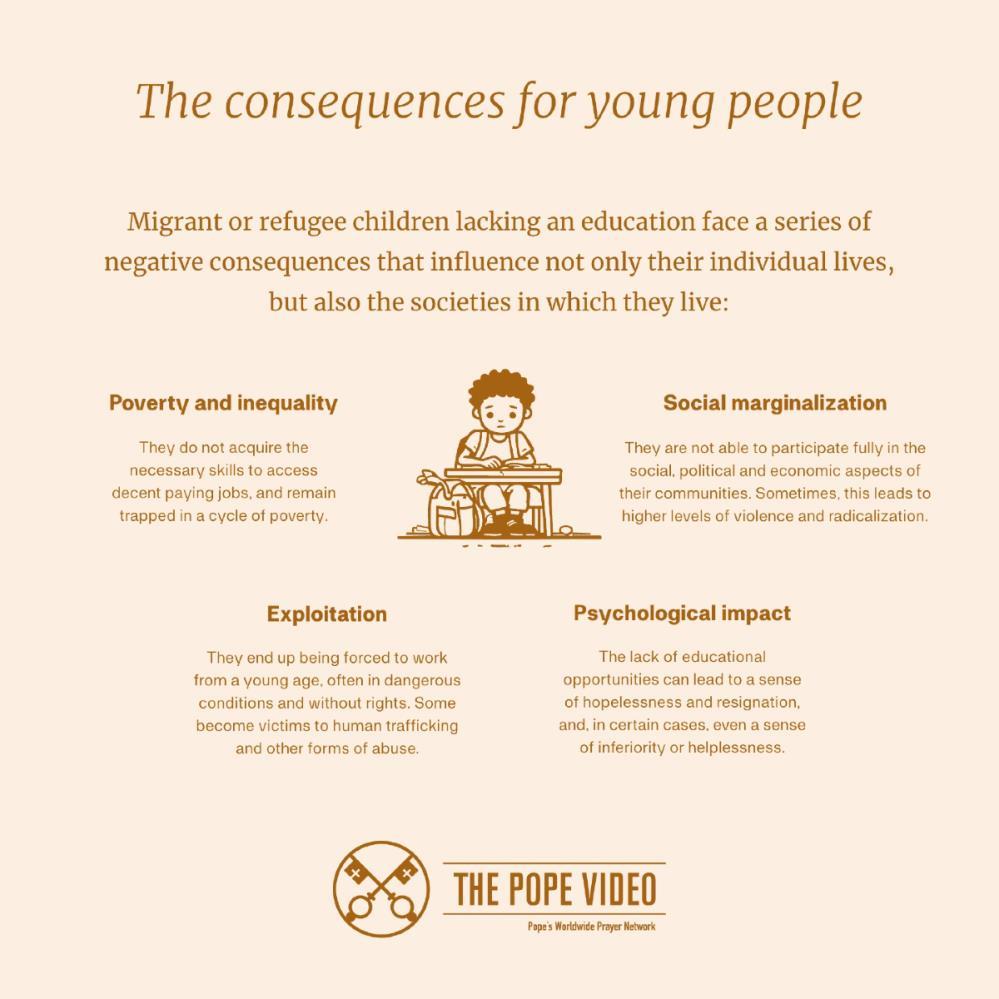 250 million without Due to wars, migration, and poverty, the Holy Father decried, some 250 million boys and girls lack education.