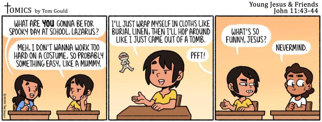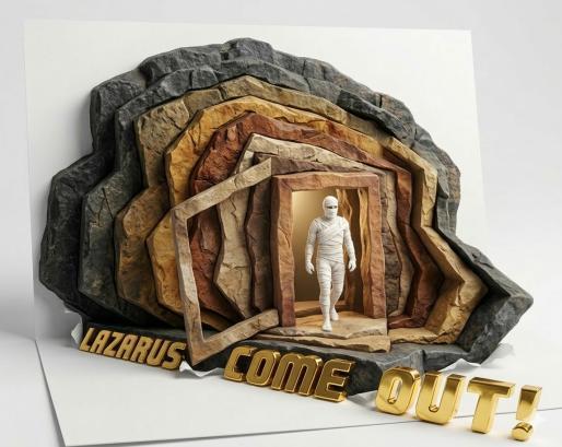 So, Martha went back and got her sister Mary and they took Jesus to show him the place where Lazarus was buried. When he arrived at the tomb, Jesus told them to roll away the stone that covered the entrance. He prayed to his Father and then he called in a loud voice, "Lazarus come out!" Do you know what happened? Even though he had been dead for four days, Lazarus walked out of the tomb! He wasn't dead he wasn'tevensick!