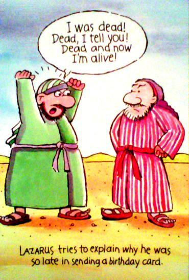 Lazarus tries to explain why he was so late in sending a birthday card.