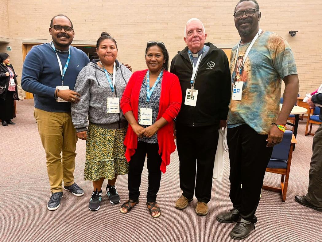 The AEC delegation to CEAMA’s 6th General Assembly, held in Bogotá, Colombia, March 16-20 2026 (L-R): Fr. Santiago Lantigua SJ (Guyana), Ms. Auxilia Jacqueline Reand (French Guiana), Ms. Marva Joy Hawksworth (Guyana), Bishop Francis Alleyne OSB (Guyana) and Fr. Jean-Paul Komi Sikpe (French Guiana) ❖