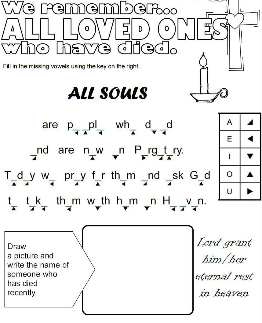 On All Souls Day, Catholics are encouraged to attend Mass, visit cemeteries, and offer special prayers for the souls of their deceased family members, friends, and all those who have no one to pray for them. The faithful often recite the Eternal Rest prayer: Eternal rest grant unto them, O Lord, and let perpetual light shine upon them. May their souls and the souls of all the faithful departed, through the mercy of God, rest in peace. Amen.