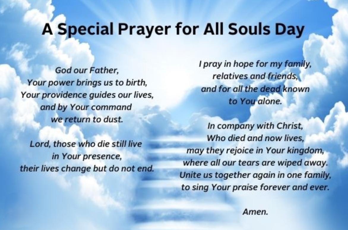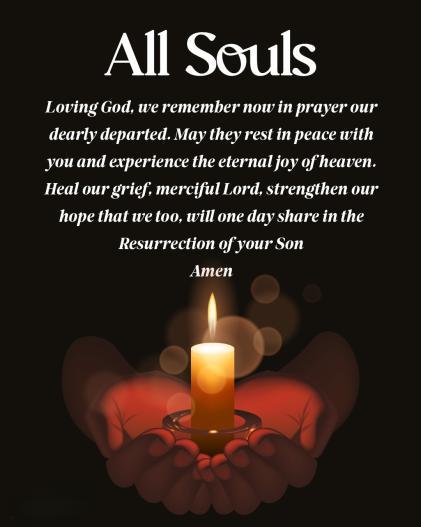 All Souls Day invites us to reflect on the mystery of death and the promise of resurrection. While the day is marked by a certain solemnity, it is also filled with hope and trust in God’s infinite mercy. We remember that Christ, through His death and resurrection, has conquered sin and death. As St. Paul writes in Romans 8:38-39: “For I am convinced that neither death nor life...nor anything else in all creation will be able to separate us from the love of God that is in Christ Jesus our Lord.”