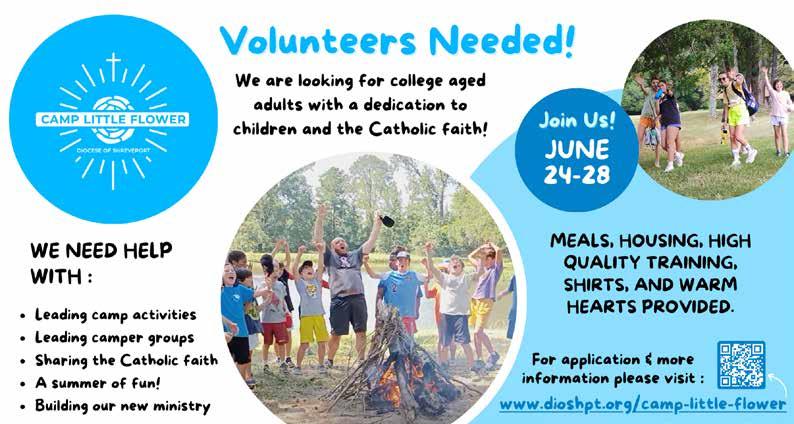Diocesan Director of PR and Editor. FEATURES 5 From the Bishop 6 Reviving the Young Church By Laurie Nick 12 Confirmation Retreat 2024 15 The Youth Are the Church By Tristan Frisk COLUMNS 10 Mary's Mission: Our Youth: The Lifeline of the Church 16 Mike's Meditations: Accompanying Our Youth 18 Karen Dill: Faith Blooms At Camp Little Flower NEWS 11 The Red Mass 26 School News 33 CCNLA: Home, With Some Help From CCNLA 34 Around The Diocese 34 Divine Mercy Sunday 36 Seminarian Burses content 6 12 28