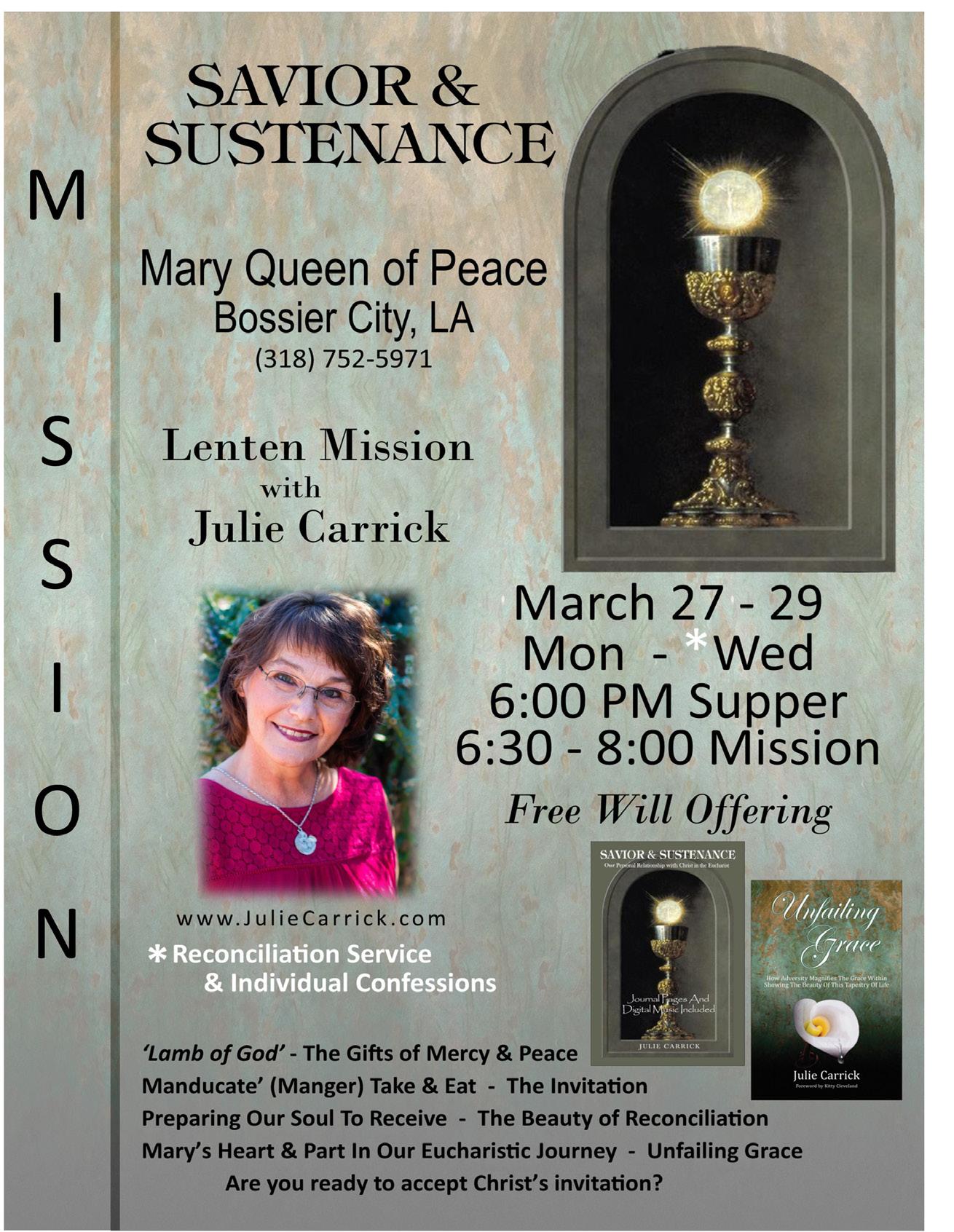Savior & Sustenance Lenten Mission with Julie Carrick @ Mary Queen of Peace, Bossier City
