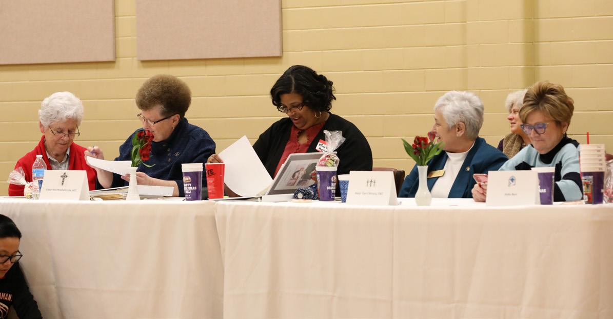 FATHER DUANE PRESENTED THE 1ST EXTRA MILE AWARD TO THE SISTERS OF THE HOLY SPIRIT AND MARY IMMACULATE. L-R ON THE PHOTO WITH FATHER DUANE ARE SISTERS MARTHA, KAYJO, AND BERNIE WHO ALL SERVED OUR LADY OF THE BLESSED SACRAMENT ACADEMY.