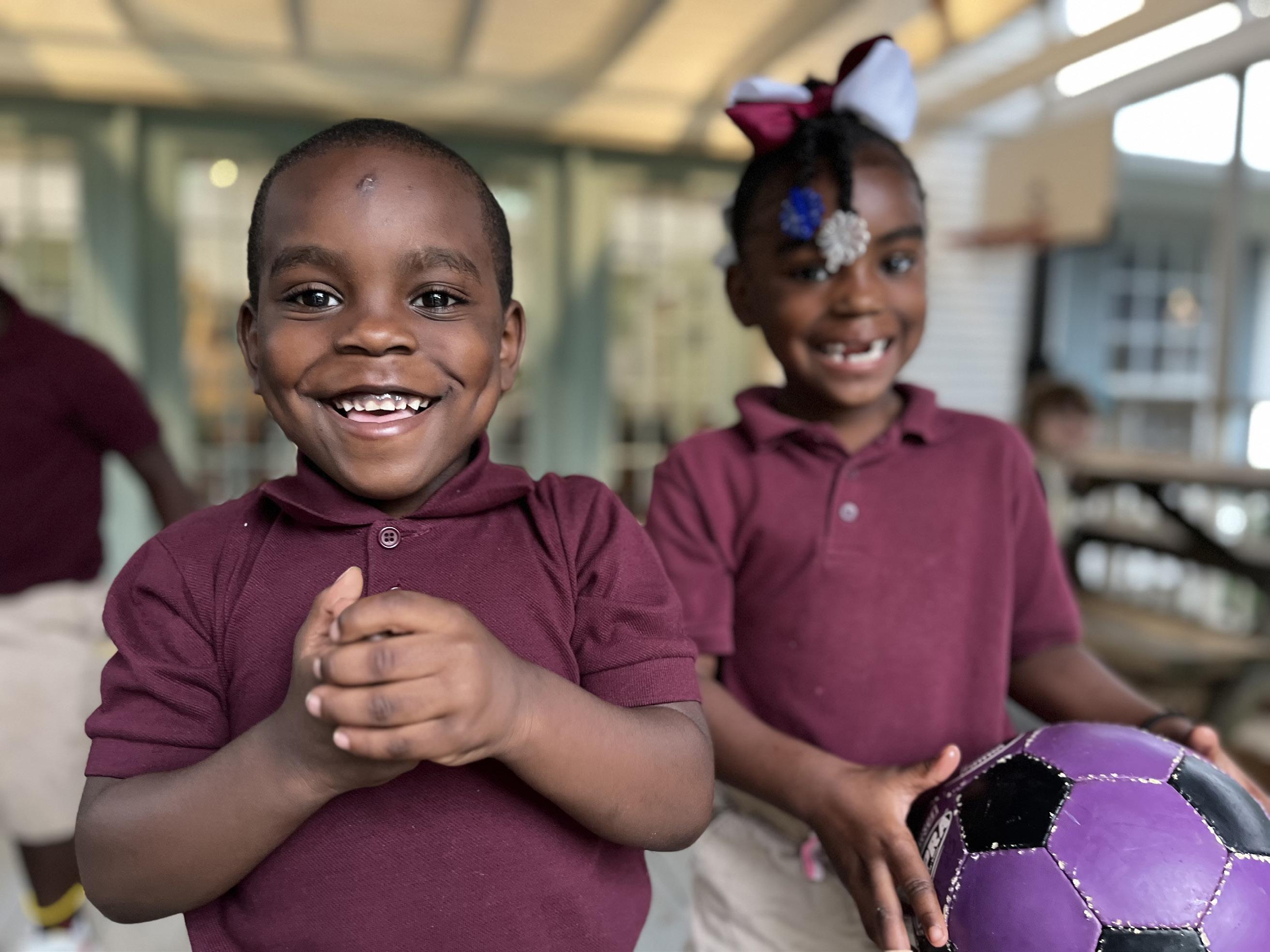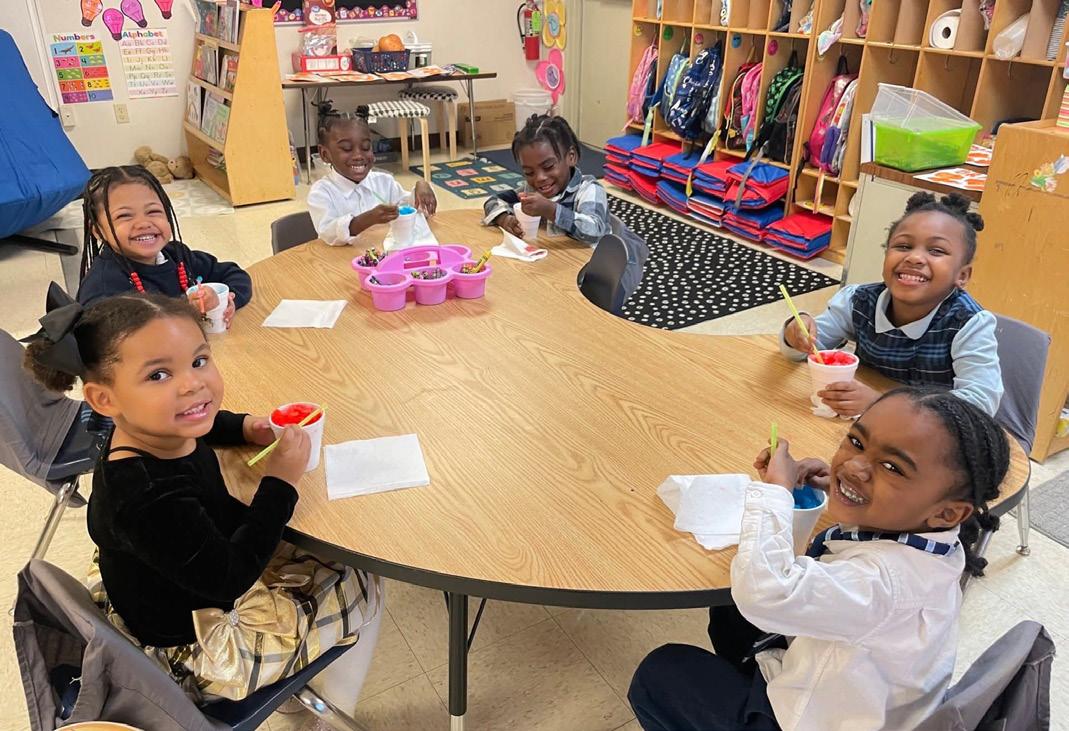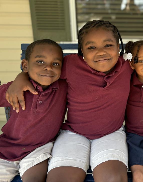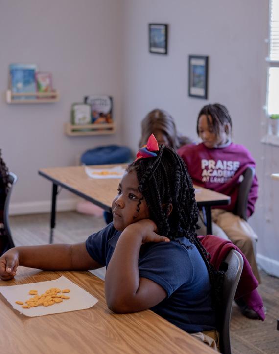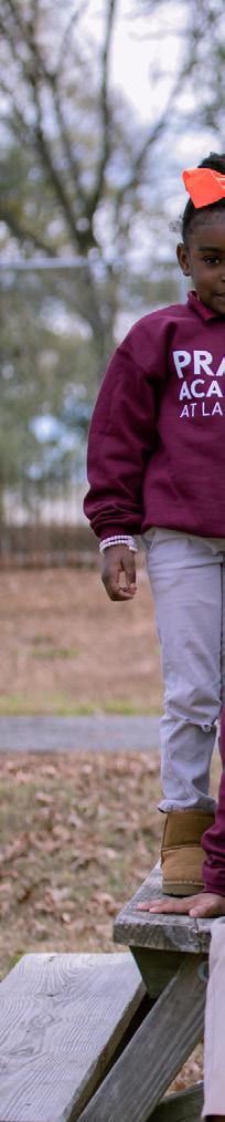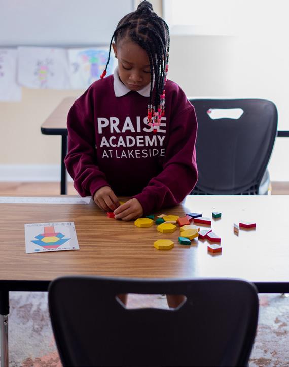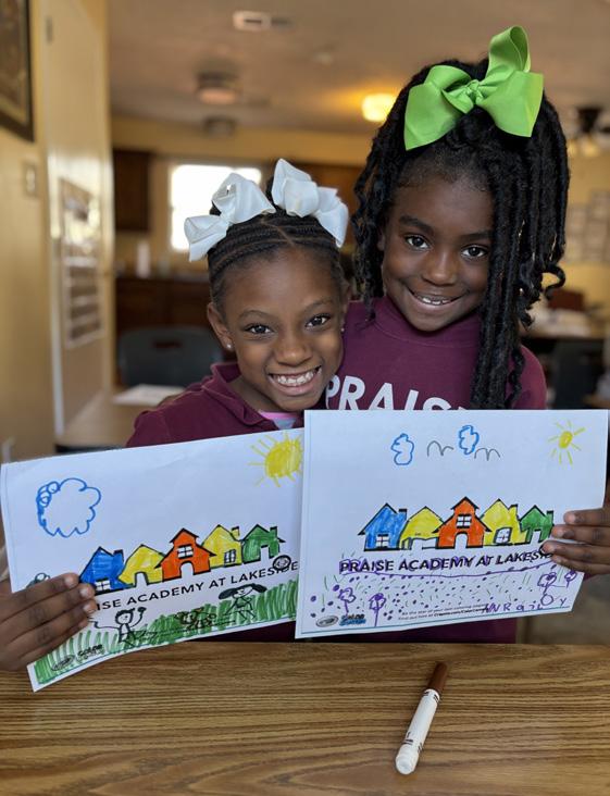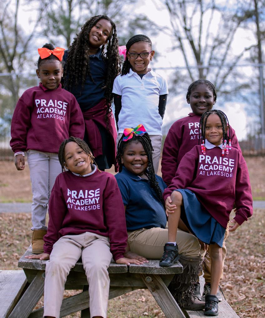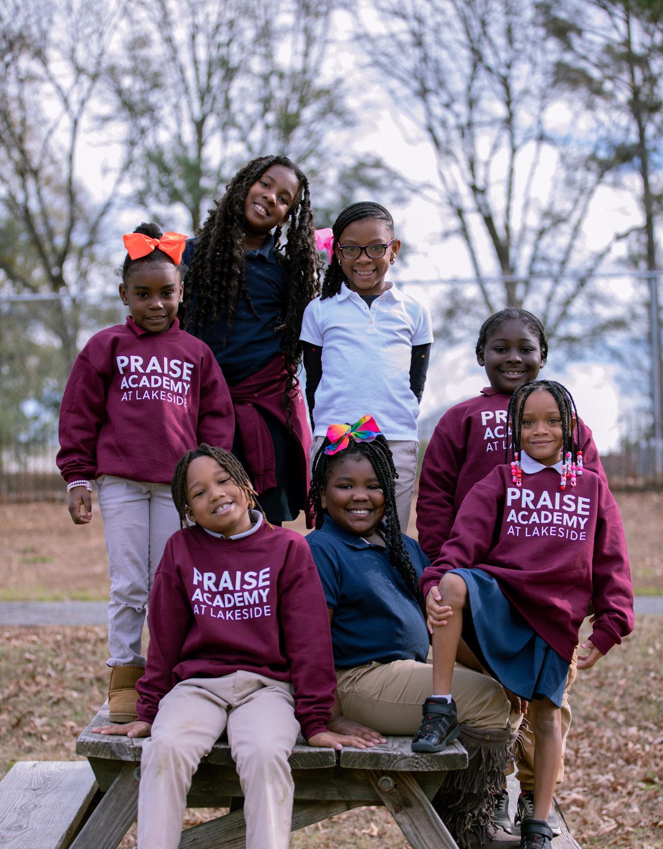 Cover photo: Praise Academy at Lakeside student, (left to right) Ra’Lynn, Mi’Kyla, Jennedy, Omari, Aaliyah, Makyia, and Corinthian enthusiastically participate in a photoshoot at recess.