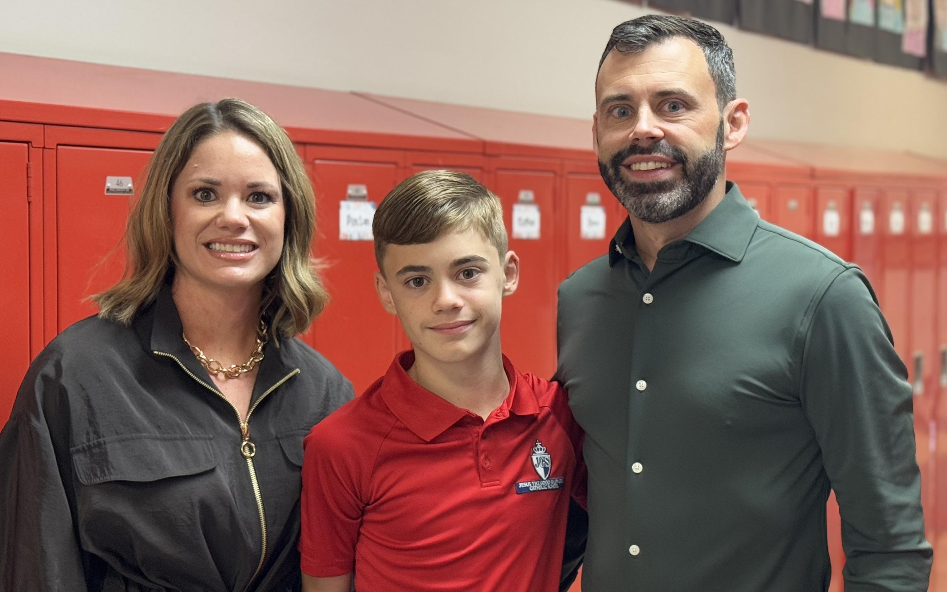 We are so proud to celebrate Paxton Pulliam, pictured here with his parents, Micah and Haley Pulliam, as our 2025–2026 Jesus the Good Shepherd School Student of the Year.
