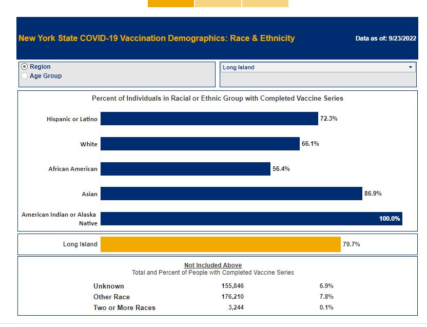 Nassau County’s total population as of 2020 is 1,395,774 (47.3% male; 49.8% female). Those ages 15-44 represent 35.1% of females; 37.5% of males; ages 60 plus represent 22.6% of males and 26.6% of females; 18 plus represent 77.3% of male and 79.5% of females The region is predominately White at 58.5% with 10.9% Black/African American (a decrease from 11.5% last report) and 11.7% Asian (up from 9.1%). Hispanic or Latino represent 18.3% of the population5, a two percent increase from the last report.