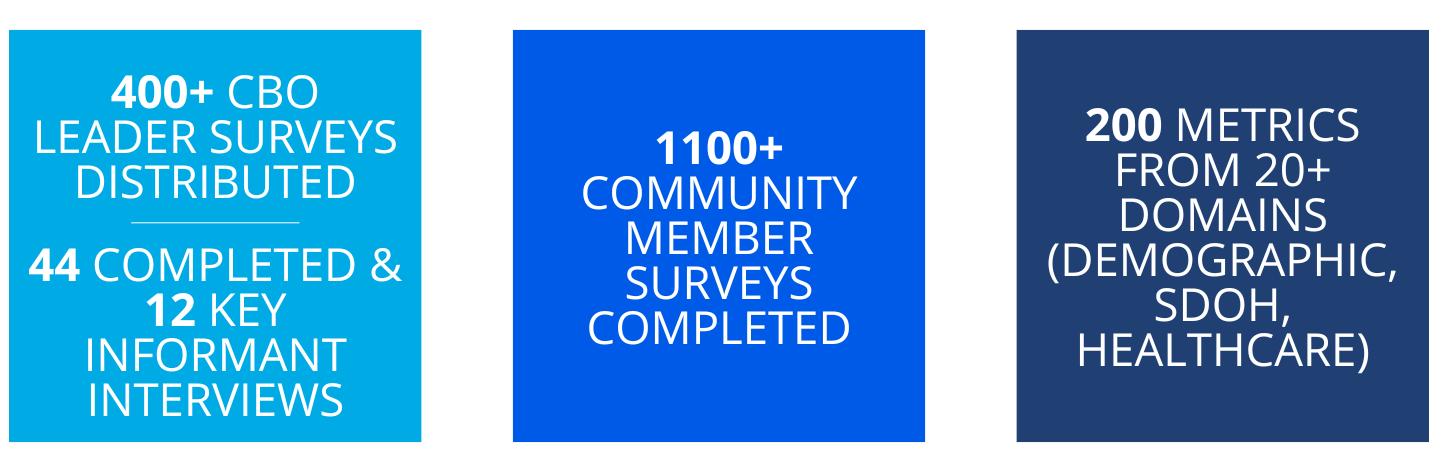 1 Community Health Assessment Survey (CHAS) assessing responses from individuals, summary report and survey instrument (Appendix A) CBO Survey Analysis 2022, assessing responses from community-based organization leader, summary report and survey instrument (Appendix B)