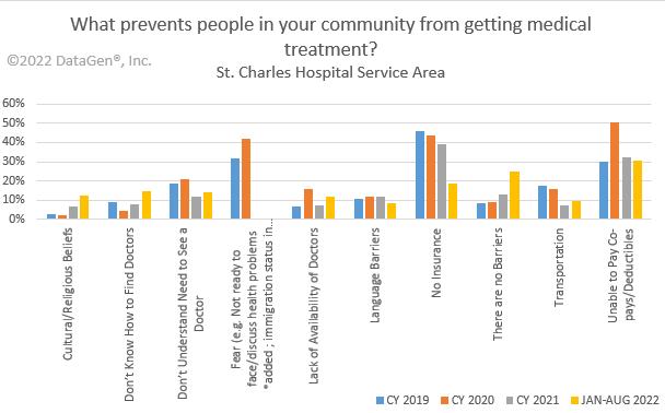 Income – one social determinant of health – precludes individuals from low-income communities from accessing preventive and/or medical care due to their difficulty to afford co-payments/deductibles (if insured) or care at all if they are uninsured. The inability to afford co-pays and deductibles consistently rises to the top as a barrier to health care on LIHC’s Community Health Assessment Survey year and after year. The median household income in the past 12 months by race is $107,422 (White), $85,840 (Black), $91,711 (Hispanic/Latino). Mean income in the past 12months, per capita by race is $50,352, $33,170 and $28,414, respectively10 .