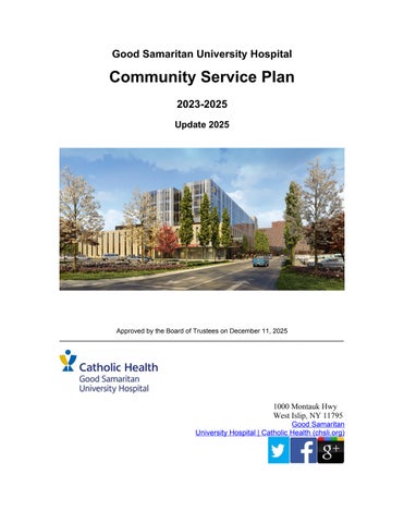 Founded in 1959, Good Samaritan University Hospital is a 537-bed (including 100 nursing home beds), not-forprofit, acute care community hospital. Good Samaritan University Hospital is located in West Islip, on the south shore of Long Island, New York. Good Samaritan’s primary service area includes: Amityville, Babylon, North Babylon, West Babylon, Bay Shore, Brentwood, Copiague, Deer Park, Lindenhurst, West Islip, Central Islip, East Islip, and Wyandanch. The secondary catchment area comprises East Massapequa, Farmingdale, Islip, Islip Terrace, Holbrook, Bohemia, Patchogue, Sayville, Oakdale and Ronkonkoma. The service area population is comprised of several communities where individuals speak a language other than English, such as the select, underserved communities of Bay Shore, Brentwood and Central Islip.