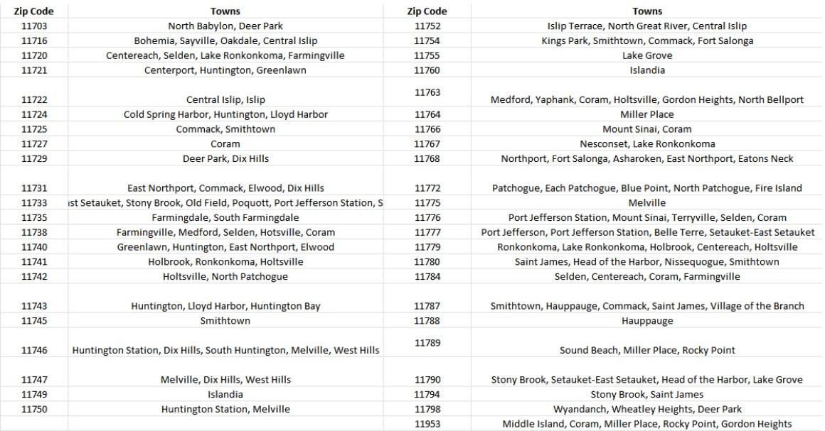 St. Catherine of Siena Hospital is a 296-bed, not-for-profit, community hospital and has served the residents of Smithtown for more than 50 years. St. Catherine of Siena Hospital’s primary service area is Suffolk County. The chart below defines the zip codes and municipalities (towns) comprising St. Catherine of Siena Hospital’s service area.