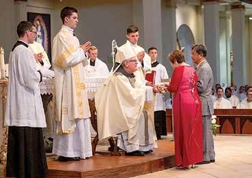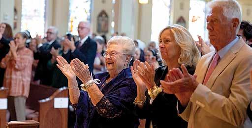Father Reid’s mother, Sharon ReidCarlson, came from Indiana for the milestone occasion. At 84, she still works as a religion education teacher.