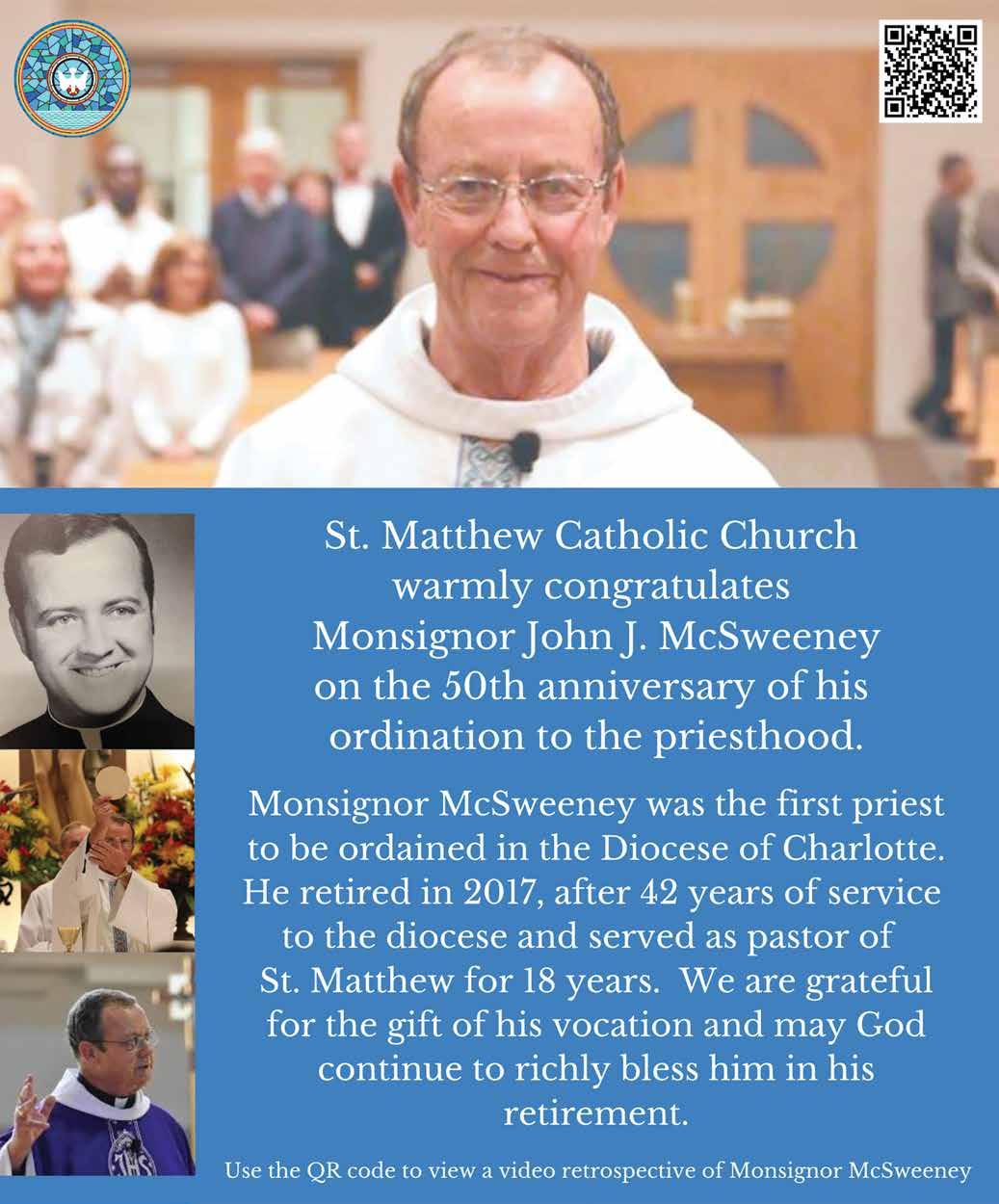 Offers prayers and thanksgiving to Msgr. Patrick Winslow our former pastor on the 25th Anniversary of his ordination to the priesthood.