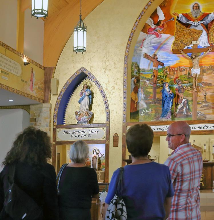 One upcoming addition is a new outdoor pavilion, which is an anniversary gift from the parishioners to their parish. The pavilion, designed to reflect the architecture of the church with its Gothic wooden arches, will be a place to meet outside to start processions and gather for events in good weather.