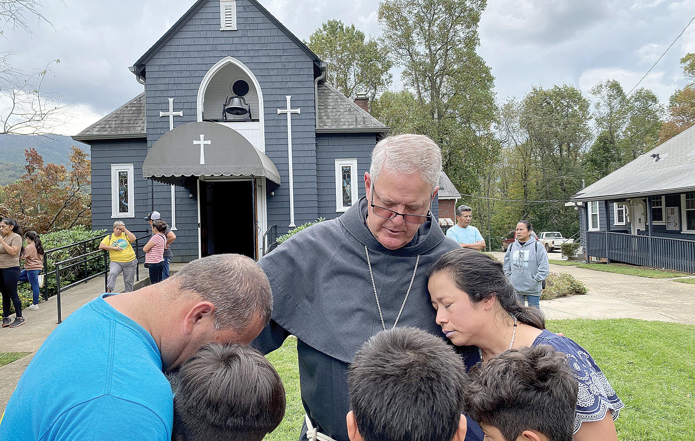 Bishop Michael Martin visited communities ravaged by Hurricane Helene as the diocese organized aid supplies and outreach to thousands in need.