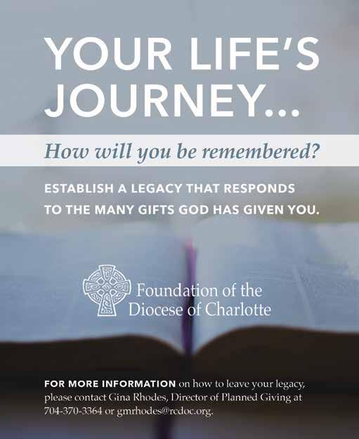SUBSCRIPTIONS: $17.25 per year for registered families of the Diocese of Charlotte and $25 per year for all others