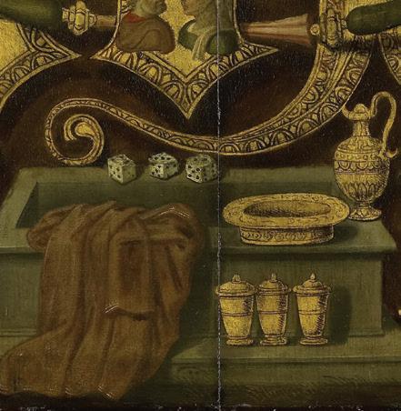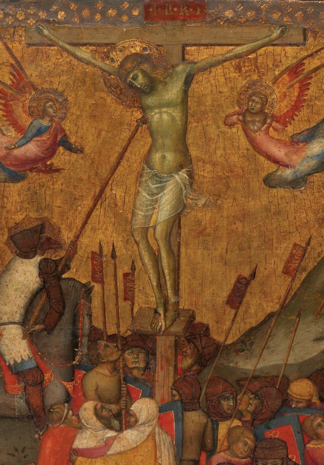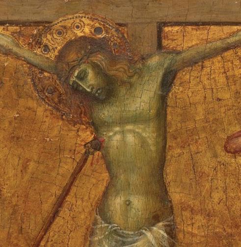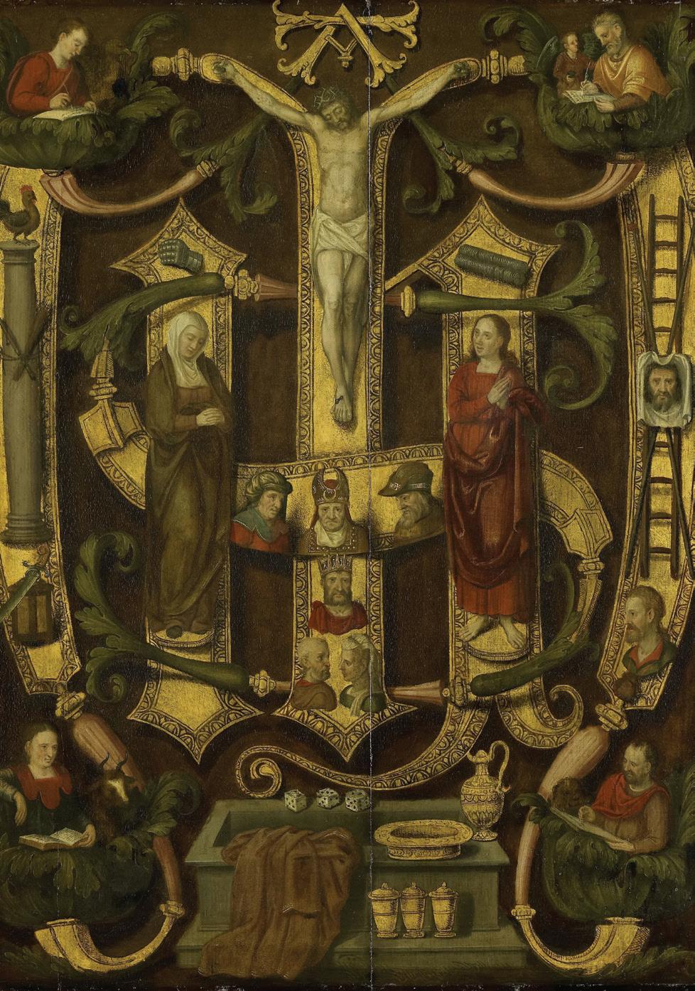 Pages 7 & 8: Monogram of Christ Combined with Instruments of the Passion by Anonymous, Rijksmuseum. 31 & 32: Altarpiece with the Passion of Christ: Flagellation by German artist (ca. 1480-1495). Acquired by Henry Walters, before 1909. The Walters Art Museum; 51 & 52: Scenes from the Passion of Christ: The Crucifixion by Andrea di Vanni. Corcoran Collection (William A. Clark Collection), National Gallery of Art, Washington; 57 & 58: Hof Altarpiece: The Crucifixion by Hans Pleydenwurff, Sammlung Picture Gallery; 65 & 66: Christ Shown to the People by Jan Mostaert, The Jack and Belle Linksy Collection, 1982. The Metropolitan Museum of Art, New York; 71 & 72: The Deposition by Follower of Rogier van der Weyden, The J Paul Getty Museum; 77 & 78: The Entombment of Christ by Fra Angelico. Samuel H. Kress Collection, National Gallery of Art, Washington; 83: The Crucifixion; The Last Judgement by Jan van Eyck. Fletcher Fund, 1933, The Metropolitan Museum of Art, New York. 84: The Crucifixion with Saint Jerome and Saint Francis by Pesellino. Samuel H. Kress Collection, National Gallery of Art, Washington. Wikimedia Commons: page 15 & 16: The Crucifixion by Andrea di Bartolo, PD-Art; 25 & 26: Diptych with John the Baptist and St. Veronica by Hans Memling, PD-Art; 37 & 38: Rehlinger-Altar, Mitteltafel: Kreuzigung Christi by Ulrich Apt the Elder, PD-Art; 43 & 44: The Master of the Benediktbeurer Crucifixion, Crucifixion, Alte Pinakothek, PD-Art.