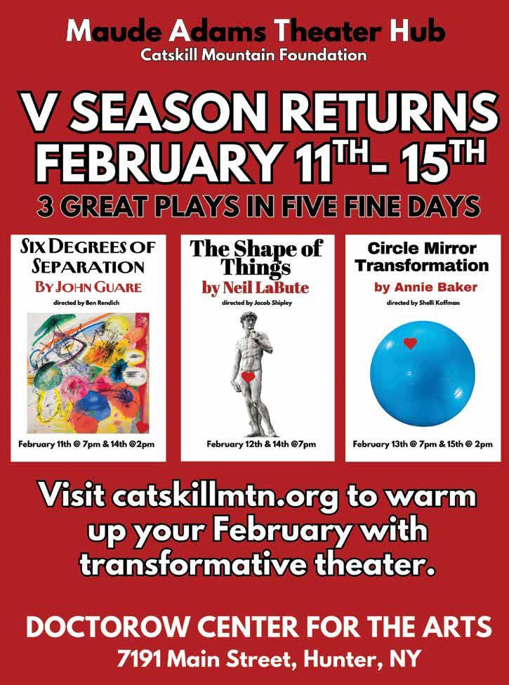 V Season will run from February 11 through 15 at the Doctorow Center for the Arts in Hunter, NY. For the full schedule, more information and tickets, please visit catskillmtn.org.