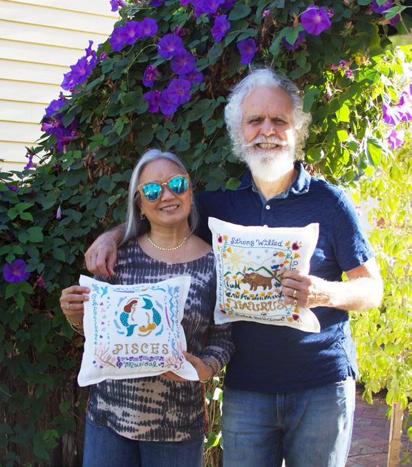 5. Production — they and the textile queen knew this was going to be a challenging project: the extensive training time, the use of up to 30 thread colors per design, the realization that it took a week to embroider one pillow, and then, getting each word & icon correct!