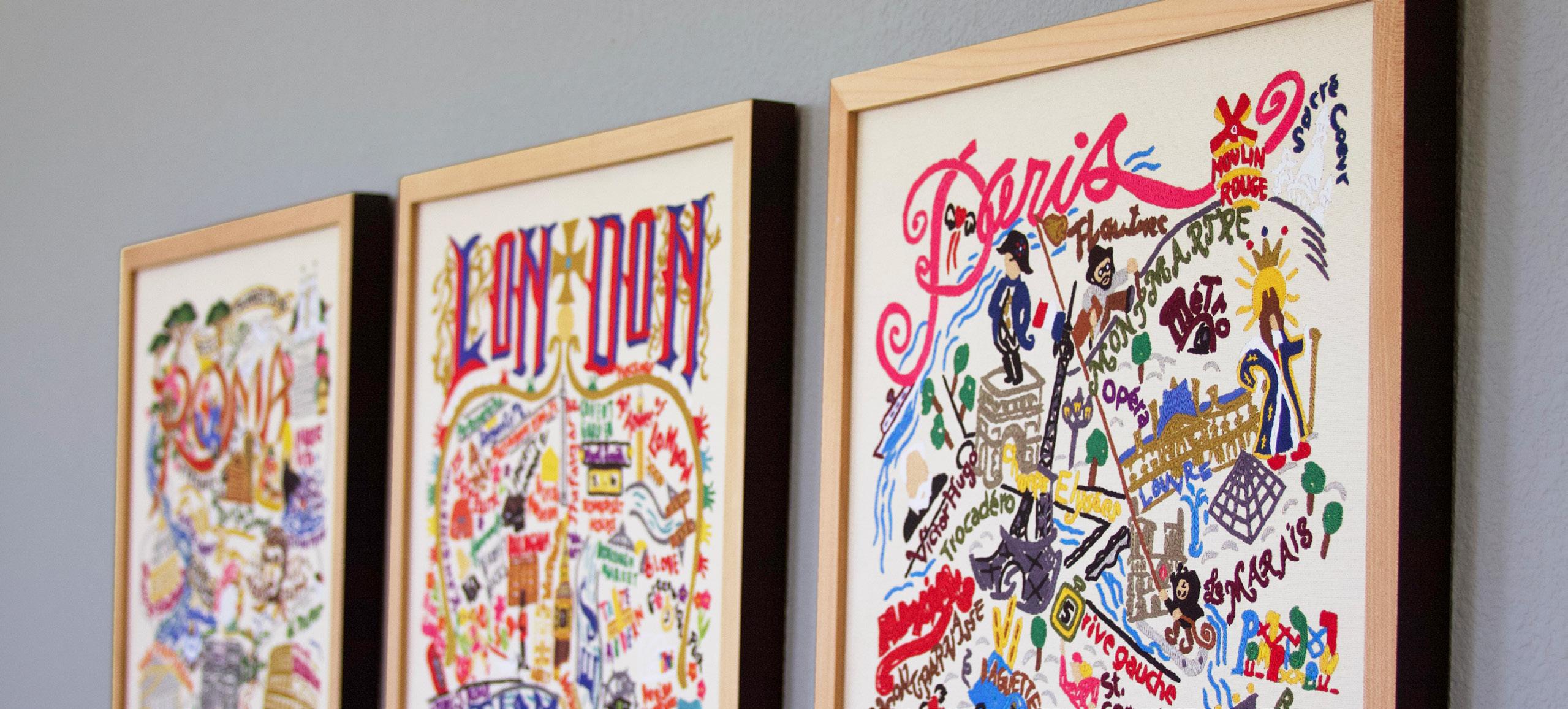 Our award-winning designs are hand-embroidered, scanned using state-of-the-art equipment, and then artfully printed on crisp, museum quality paper - perfect for framing. Your friends won’t believe you when you tell them it’s a print!