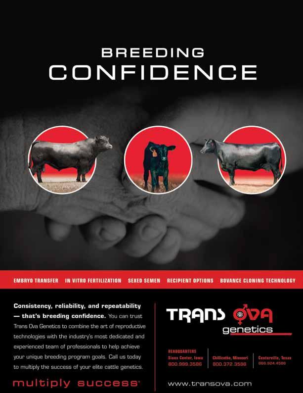 WARRANTIES: 1) Each consignor warrants clear title to the animal, and the right to sell same. 2) Each animal is sound and healthy in every respect and embryos have been recovered, processed, frozen, transferred and graded in keeping with IETS recommendations, unless otherwise noted in the catalog or announced from the auction stand. Every precaution will be taken to represent the physical condition of each animal or embryo, donors or recipients exactly as know. Examination of all purchases should be made