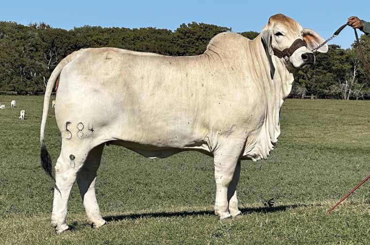 It is with a great deal of pride that we offer her to you for this historic occasion. Here is a great genetic breeding piece. Following our belief that “the magic is in the cows,” we focused on linebreeding and stacking standout females. In her case, Miss V8 594/9 is double-bred to +Miss V8 410/6, a cow highly recognized in the breed. She was featured on the cover of The Brahman Journal and produced herd sires Mr. V8 85/7 “Ocho Cinco,” Mr. V8 756/7 “Megastroke,” and Mr. V8 903/8 “Omega,” along with 14 V8 donor females who are either her daughters or granddaughters. This cow family’s influence on our program is significant, year after year. Miss V8 594/9 is sired by Mr. V8 715/7, a direct son of +Miss V8 410/6 and +JDH Sir Avery Manso 159/7. Her