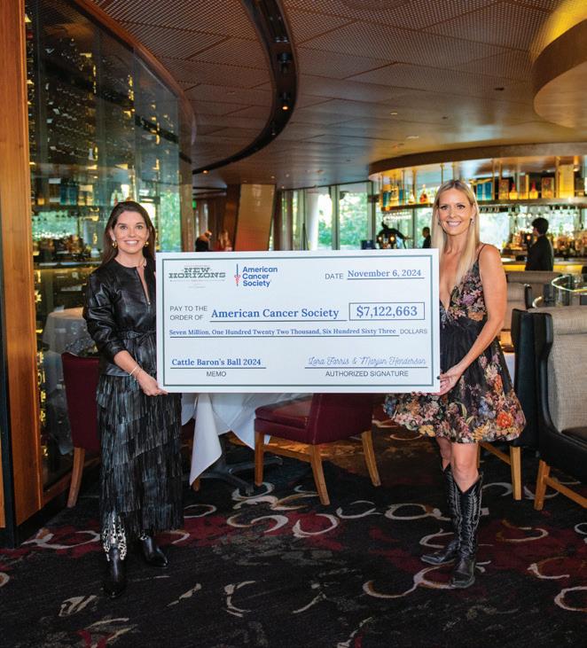 The CBB Fall Luncheon was hosted at Del Frisco’s Double Eagle Steakhouse. 2025 Chairs Courtney Derderian and Nina Sachse welcomed the committee and Past Ball Chairs, and then it was time for the big announcement of the day! 2024 Chairs Lora Farris and Marjon Henderson presented a record-breaking $7.1 million check, pushing Cattle Baron’s Ball and cancer research to New Horizons!