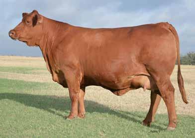 Elle is a big boned and stout made replacement female. She is sound in her structure and sound in her feet and legs. She is a high performing female that is going to raise high growth calves that performs in the show ring or across the scales. Two units of semen are available with this female for future use, including bulls like: Humble, Lubbock and Easy Like.