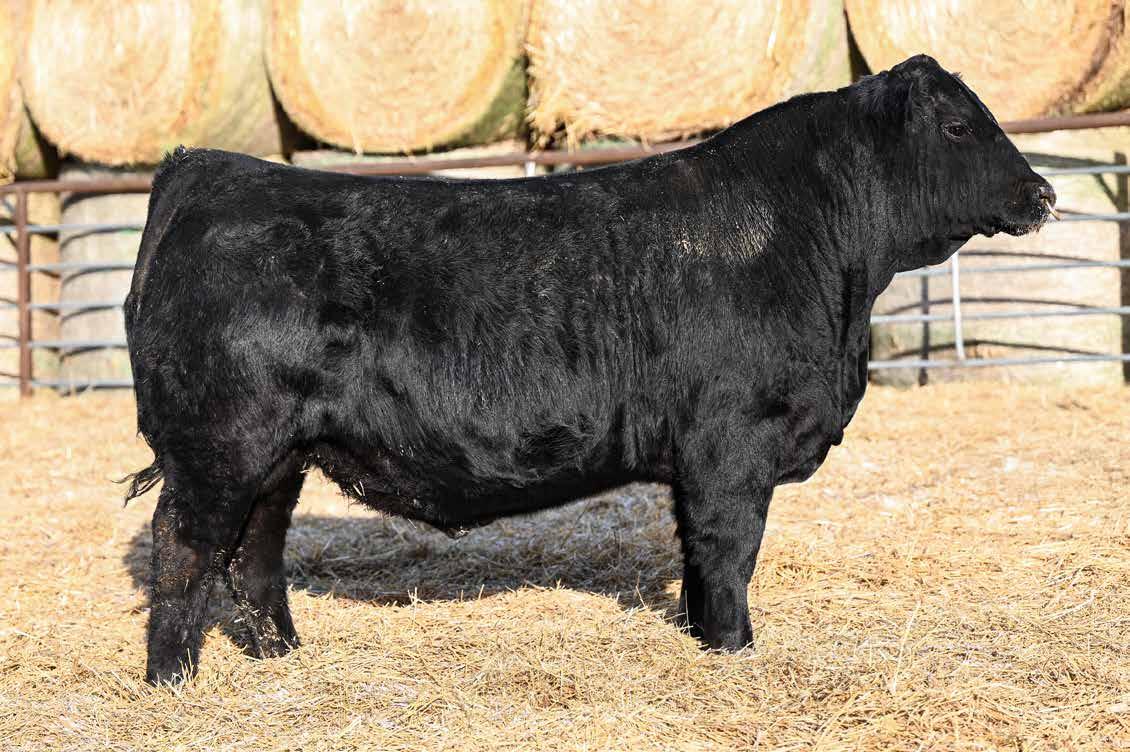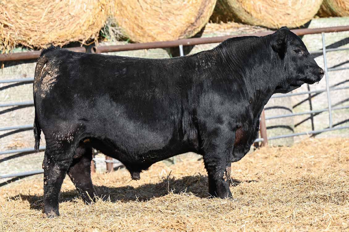 The Frontrunner son that brings added size and power to the offering. Huge topped bull that scanned a big ribeye. A bull that offers yield and maternal along with a tremendous amount of heterosis in a 94% package.