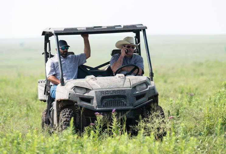 Post weaning is where our bull development is vastly different versus most. After weaning and monitoring them for a few weeks for health the bulls are then returned to forage for the summer months. They graze a variety of native forages the Flint Hills has to offer along with Triticale. When summer ends the bulls will weigh near 1,000 pounds for their yearling weight. After Labor Day the bulls return to headquarters, and we begin feeding them a more traditional bull development ration ahead of our bull sale.