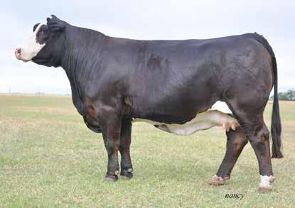 Stacy is an attractive, well balanced and feminine solid black female. Her overall correctness and sound pedigree all translates to Stacy making a top brood cow. Her combination of physical characteristics combined with balanced EPDs ensures longevity and profitability. Her sire Push continues to stamp his offspring with the consistency expected in top herd sires. She sells bred to our exciting young Simmental herd sire, Smith RFI Revolution. This is an exciting genetic combination and also generates a quick return on your investment given current market conditions. Buy with confidence!