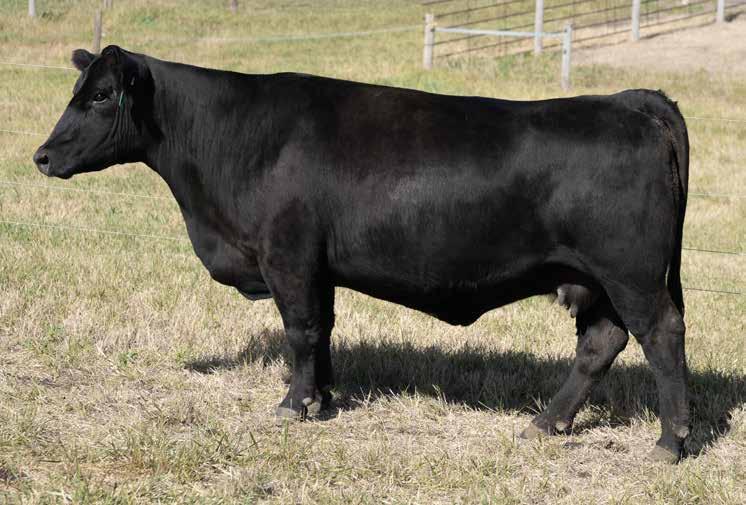 cows as she is coming with her 11th AI sired calf in a row and all her previous calves, except one due to injury, have been marketed or retained as breeding stock. She boosts an average WW ratio of 111 on 10 calves all while maintaining a perfect hoof. Her dam, 6U, is also the mother of Hook’s Crystal 1C, the dam of Eagle. She has sons and daughters working in herds across this country and her mating to Keynote produced a tremendous heifer calf this year that is right at the top of our replacement pen.