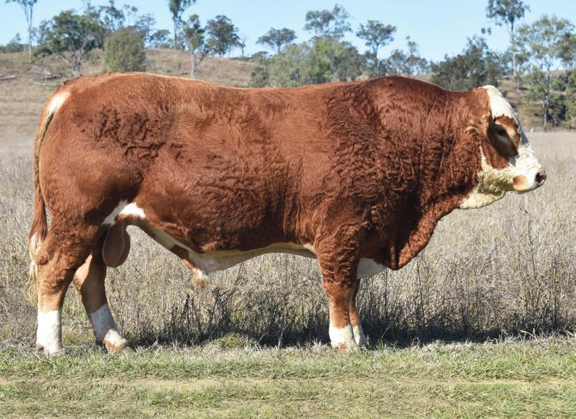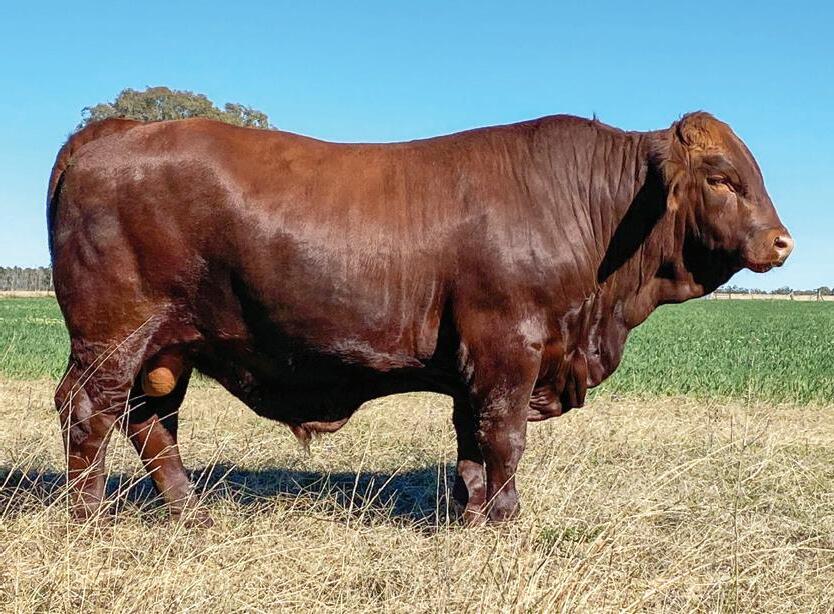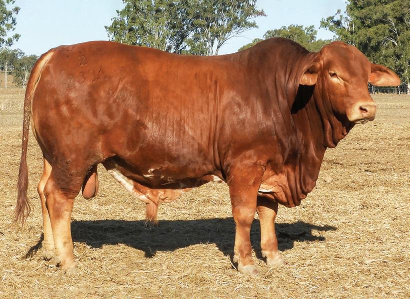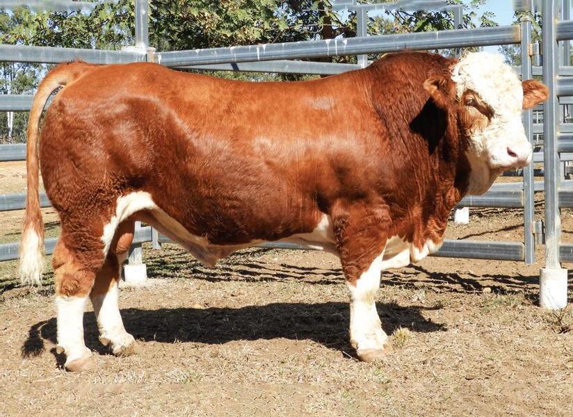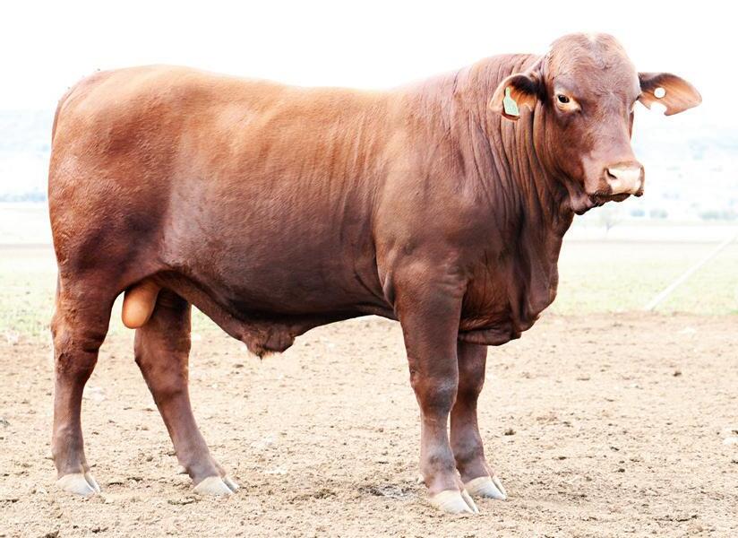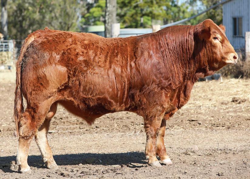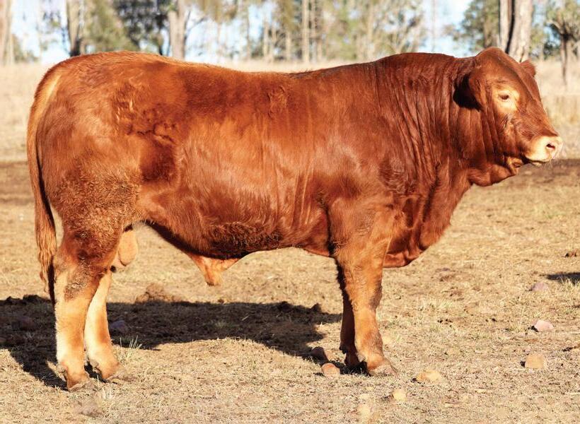 Red bull with plenty of carcase and softness. Top 10% of the breed for birth weight 20% for marbling and top 2% for stayability.