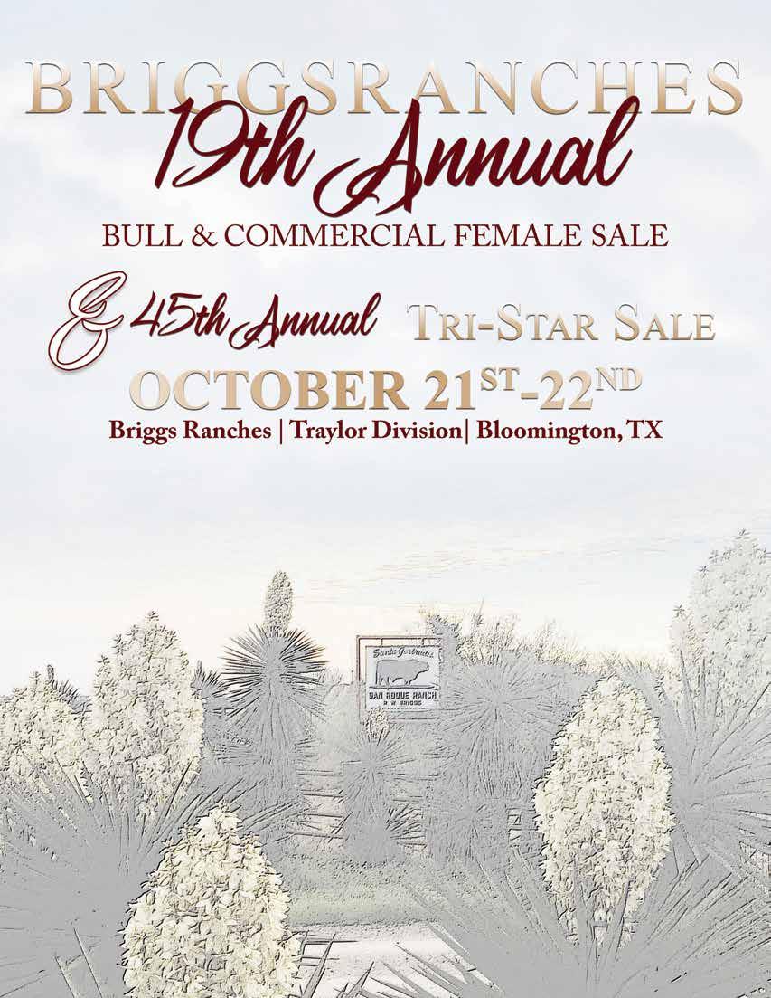 15 RANCHESBRIGGS2022 BULLSGERTRUDISSANTABRIGGS 584J 20213676 l 584J l 4/4/2021 l Horned l Bull BRIGGS 605/8 BRIGGS 532/5 BRIGGS 128/3 605 BRIGGS 778D 20164635 MULTIPLE DAM MS-SONS OF WACO 9-9 MULTIPLE DAM BRIGGS 551/0 2S RANCH 3166 BRIGGS 145/3 BRIGGS 584C 20154519 BRIGGS 582/12 BRIGGS 532/5 BRIGGS 593/6 BW WW YW MILK TM SC HCW REA MARB FT %RankEPDsAcc 85%.150.7 50%.358 35%.2315 80%.16-3 65%5 95%0.25.07 45%.11-2 -0.02.2265% >95%-0.15.33 >95%0.03.36 Briggs 584J dam Briggs 584C has a calving interval of a 352 on 6 head and has averaged $5,000 in progeny in past sales. He ranks in the top 50% in 4 EPD traits. ADJ REA/CWT 1.16, ADJ IMF 3.79, ADJ SC 33.2 Bal Idx 75% C/C Idx 55% Term Idx 85% B iggs Ranches 36 BRIGGS RANCHES BRIGGS 637J 20213713 l 637J l 2/12/2021 l Horned l Bull BRIGGS 906/14 BRIGGS 031/6 BRIGGS 004/0 BRIGGS 146F4 20187392 BRIGGS 214/14 BRIGGS 070/9 BRIGGS 146/8 BRIGGS 740/14 BRIGGS 504/8 BRIGGS 099/11 BRIGGS 637F4 20187477 BRIGGS 030/12 HARRIS FARMS 46/6 BRIGGS 661/5 BW WW YW MILK TM SC HCW REA MARB FT %RankEPDsAcc 75%.050.4 20%.1717 35%.1114 70%.08-2 30%10 90%0.26.06 35%.050 25%0.08.11 -0.10.1690% 85%0.01.17 Briggs 637J ranks in top 35% in 5 EPD traits. ADJ REA/CWT 1.32, ADJ IMF 5.17, ADJ SC 32 Bal Idx 55% C/C Idx 65% Term Idx 50% B iggs Ranches 37 BRIGGS RANCHES HARRIS MATEO 2J6 20216033 l 2J6 l 2/16/2021 l Horned l Bull RED DOC DINERO 4088 KR RDF189/11BONITA 8017 CA/RDF MATEO 7238 20174206 RED DOC 4009 HF FRED 390/1 RDF 9177 LJV MASON 0/72 SR LJV710DOLLY 8/48 SR LIV 2/6 20161095 SR 837 SR 444 SR 613 BW WW YW MILK TM SC HCW REA MARB FT %RankEPDsAcc 10%-1.1.17 10%.2123 15%.1724 90%.10-4 25%11 65%0.34.05 10%.097 0.23.163% 0.26.215% 95%0.02.22 Harris 2J6 is a CA/RDF MATEO 7238 son. He ranks in the top 35% in 8 EPD triats. ADJ REA/CWT 1.16, ADJ IMF 4.69, ADJ SC 34.5 Bal Idx 4% C/C Idx 10% Term Idx 3% B iggs Ranches 38 HARRIS FARMS BRIGGS 106J 20213569 l 106J l 3/15/2021 l Horned l Bull BRIGGS 052/11 BRIGGS 031/6 BRIGGS 515/5 TARZAN BRIGGS 651D2 20164500 BRIGGS 124/12 CHAPS LONESTAR 107 107/2 BRIGGS 569/9 BRIGGS MULTIPLE SIRE MS MULTIPLE SIRE MS MULTIPLE DAM BRIGGS 106/12 20125851 MULTIPLE DAM MS-SONS OF WACO 9-9 MULTIPLE DAM BW WW YW MILK TM SC HCW REA MARB FT %RankEPDsAcc 70%.060.3 10%.3320 25%.2119 25%.162 10%16 0.68.063% 30%.101 30%0.06.20 45%0.01.31 95%0.02.34 Briggs 106J dam Briggs 106/12 has a calving interval of 366 on 8 head and has averaged $8,250 in progeny in past sales. He ranks in the top 30% in 8 EPD traits. ADJ REA/CWT 1.16, ADJ IMF 4.13, ADJ SC 36.4 Bal Idx 20% C/C Idx 15% Term Idx 30% B iggs Ranches 39 BRIGGS RANCHES BRIGGS 500J 20213647 l 500J l 4/25/2021 l Horned l Bull T3 PASSPORT 2C4 BRANGUSBRANGUS BRIGGS 930E5 20176222 BRIGGS 506/0 BRIGGS 504/8 BRIGGS 627/7 BRIGGS 557/8 BRIGGS 030/5 BRIGGS 142/4 BRIGGS 500E 20176122 BRIGGS 502/0 BRIGGS MULTIPLE SIRE MS BRIGGS 500/8 BW WW YW MILK TM SC HCW REA MARB FT %RankEPDsAcc 50%-0.3.07 >95%-13.31 90%.18-4 35%.121 >95%-2 25%0.47.03 80%.08-7 -0.08.1790% 40%0.03.28 -0.01.3020% Briggs 500J 3/4 Santa Gertrudis 1/4 Brangus. His Dam Briggs 500E who is in this years Tri Star Sale has 372 calving interval on 3 head. He ranks in the top 40% in 6 EPD traits. ADJ REA/CWT 1.18, ADJ IMF 3.73, ADJ SC 34 Bal Idx 85% C/C Idx 75% Term Idx 90% B iggs Ranches 40 BRIGGS RANCHES 36Lot