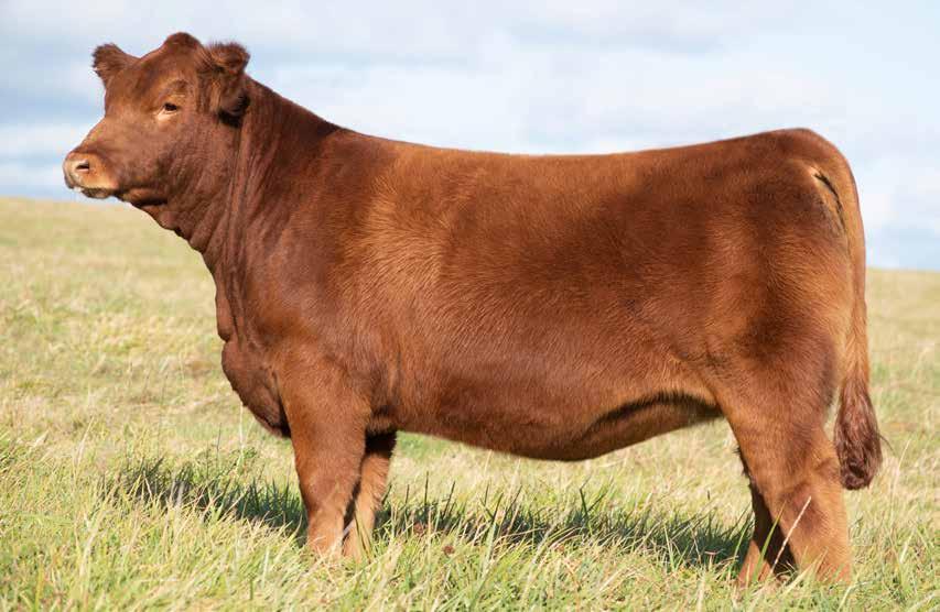 bred heifer that has front pasture brood cow written all over her and one that we are confident will have a big impact on a program. Our blacks on offer are some of the most exciting heifers that we have raised to date and they are headlined by a couple of blaze faced RF Caliber daughters that are backed by a big time producing Broker dam who will be entering our donor program in the spring. The reds are ones that won’t disappoint, with a WKF Flirt 24J daughter selling whose full brother was Supreme Bull Calf at Expo Boeuf in Victoriaville,Quebec this fall. She comes from a long line of maternal power going all the way back to her Great Granddam, RF Flirt 434B, which is a full sister to RF Merchant. A powerhouse baldie LRX Cheyenne 14U granddaughter sired by the exciting outcross RF No Limits bull also sells! We truly believe that all of these females will make unique breeding pieces and each have something different to bring to the table.