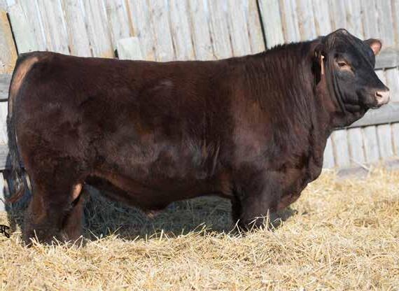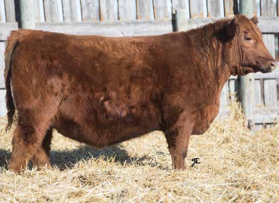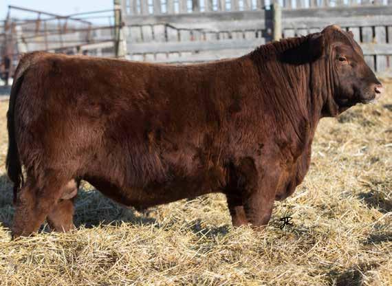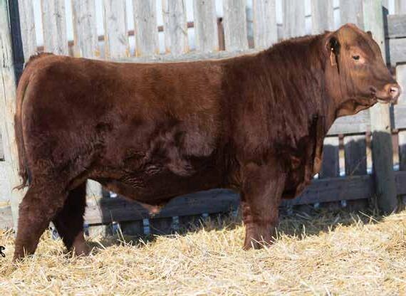 RED DEER RANGE DASH 389H - A purchase we had Charlene and Sidney go check out for us as we couldn’t get down there to see the 2-yearolds before the sale. We were privileged to tour the herd the previous summer and we were impressed with the easy doing good looking cows with exceptional feet that Travis continues to breed forward in his herd. Dash is now a 4-year-old this year and going strong. He is not an exceptionally big herd bull but he breeds them small to come out, dark colored and they grow like the dickens. The one thing that we really notice on the Dash calves besides their usually dark coloring is that he corrects udders every time in the red heifers he produces. We bought Dash because we knew he would have calving ease. Dash calves are long and they grow to some of our biggest bulls that we offer but dad is not as big as his yearling bulls. He crosses well for us and we strongly believe he will do that in any of our customers yards. Exceptional feet and just keep going up. They are usually wearing an orange tag and they will attract your attention.