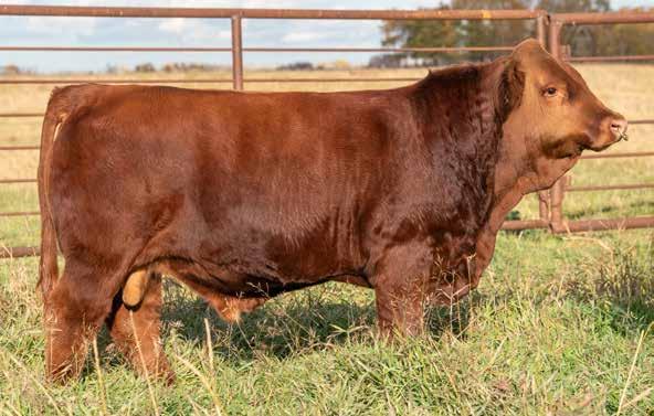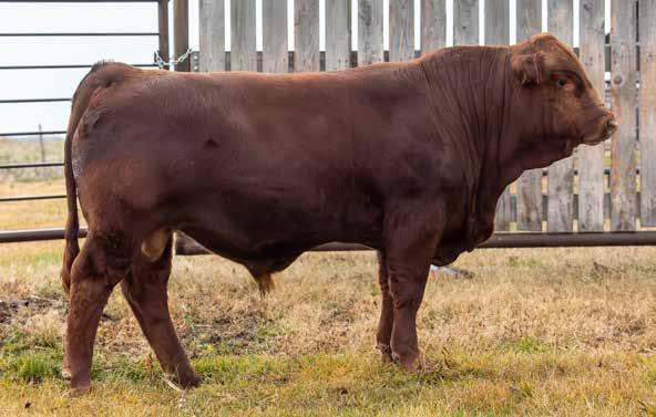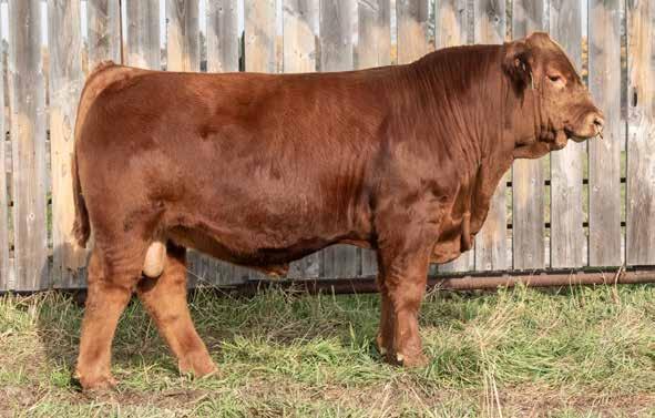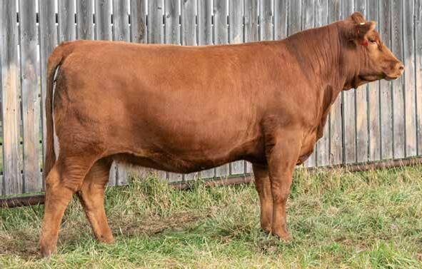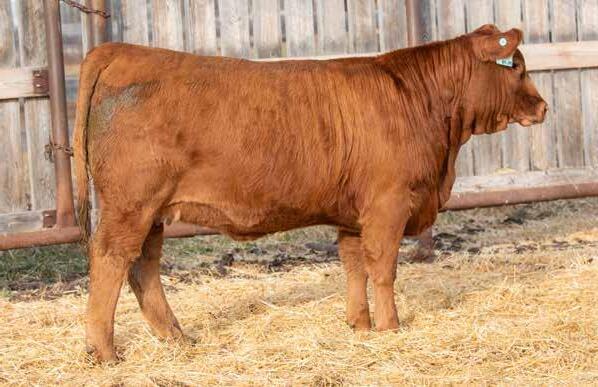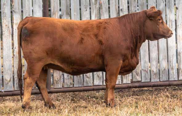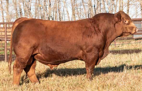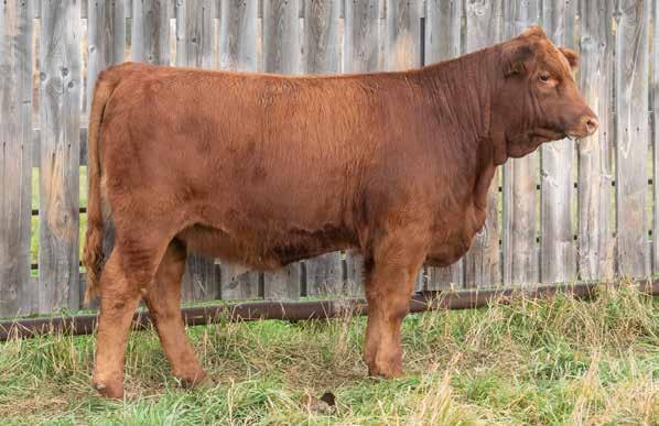 83 lb birth weight. 14 for calving ease. Baby Face we feel is a solid heifer bull option all day long. He’s smooth made, clean shouldered, and sleek fronted. He is that desired dark red color, has a gentle disposition, and comes with scrotal development to burn. His dam is a cow we really like. She is moderate framed and easy keeping with great udder quality. We have her first calf retained in our bred heifer pen. His sire is Empire- again a bull that we had great success with last year. Calves came small and all grew well. Is Baby Face going to be the biggest, most powerful bull in the futurity? No. But he is one we think could help move a lot of programs forward!