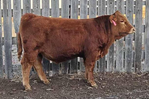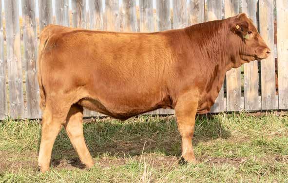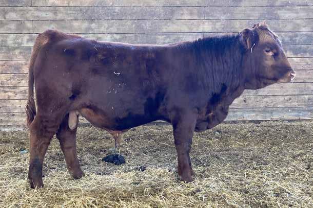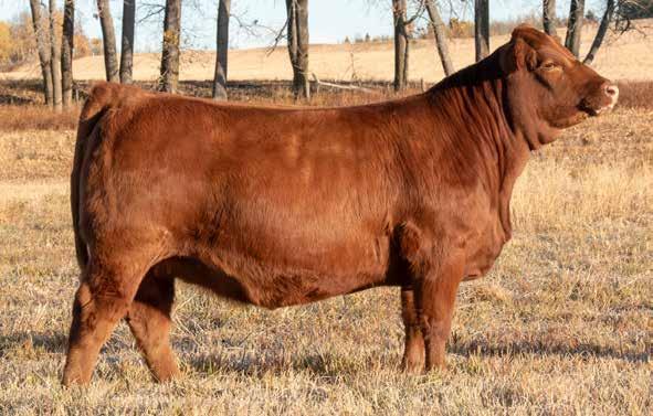 Big time power in this bull! Max 2M is cherry red, wide topped, and extra long. He is a full sibling of the bred heifer we have for sale in the Wishlist this year. Obviously- we think very highly of this genetic combination. His sire continues to give us calves with that desired natural growth and muscle. His cow is one of our very best- as consistent of a producer as you might find. We anticipate Max’s calves will be born moderate like him- 86 lb birth weight- then hit the ground running and grow. An outcross pedigree to most- this will be a bull that’ll catch your eye in Stettler.