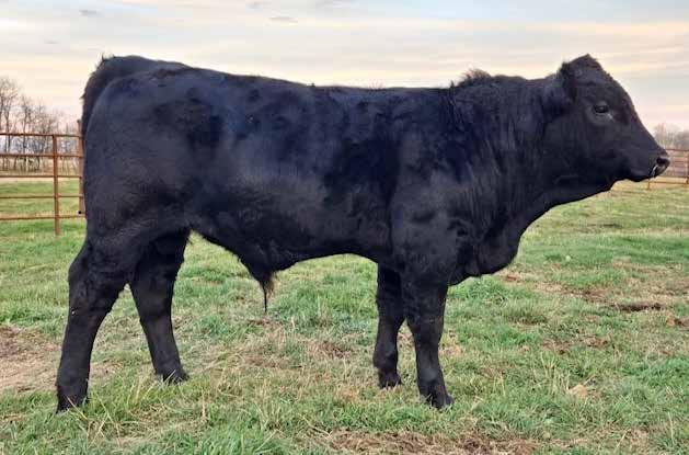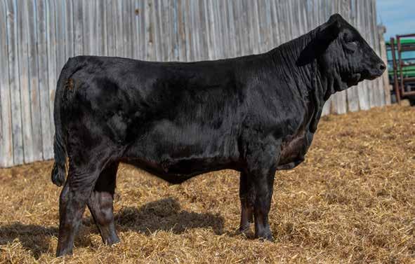 Silverline Moovin Money might be accused of being counterfeit currency! He is an almost exact copy of Hillsdown Earthquake. He is super smooth through the shoulders and carries incredible depth throughout. Earthquake boasts a CED EPD of 19 and BW of -3.7 so you can expect calving ease, consistently low birth weights and vigorous calves at birth that wean well beyond expectations. The best part however is the incredible quiet temperament. This calf is the first from a super quiet (scratches in the pasture quiet) very maternal type heifer that goes back to HYEK Black Impulse. This is an incredibly rare heifer bull whose calves will definitively push down the scale in the fall.
