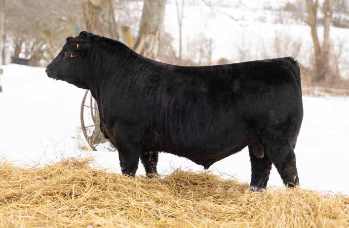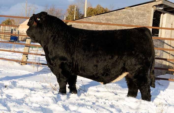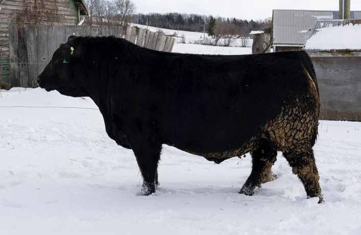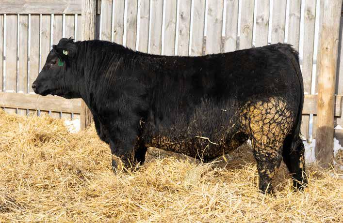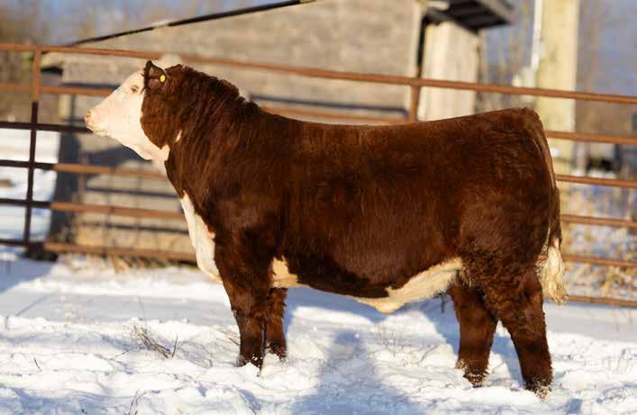 • A deep bodied, powerful young herd bull prospect packed full of performance on an excellent set of feet! Bid with confidence here as he will add pounds to his calves and leave some pretty awesome females!