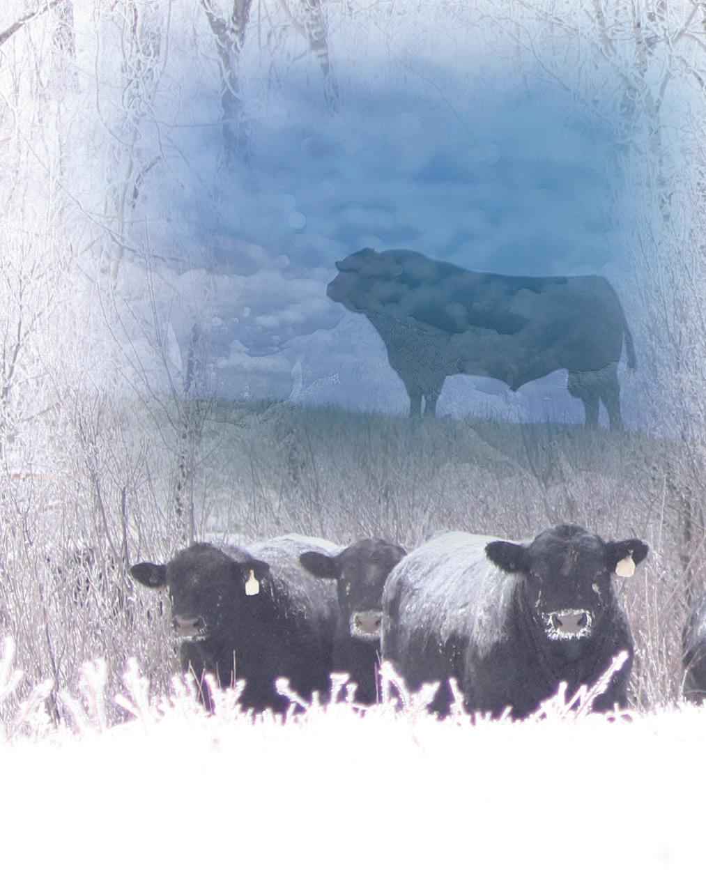 An aerial photo of the ranch in the winter of 1990 oversees the work area where we prepare our portion of this catalogue. It reminds us raising cattle requires dedication and passion in order to persist through fickle weather and markets and the day-to-day tasks of keeping critters alive and where they are supposed to be. Our herd is the product of our passion and dedication. We really do enjoy raising good cattle. For us, a “vacation” typically involves looking at another producers’ herd or bull pen in search of our next herd sire, and a day rarely passes without a conversation about improving some aspect of our herd or operation. We strive to raise structurally sound and efficient cattle.