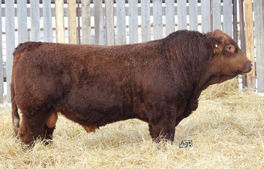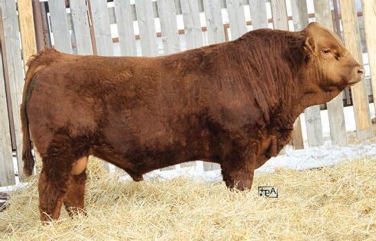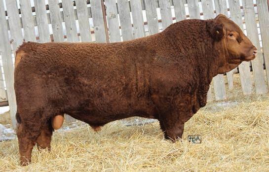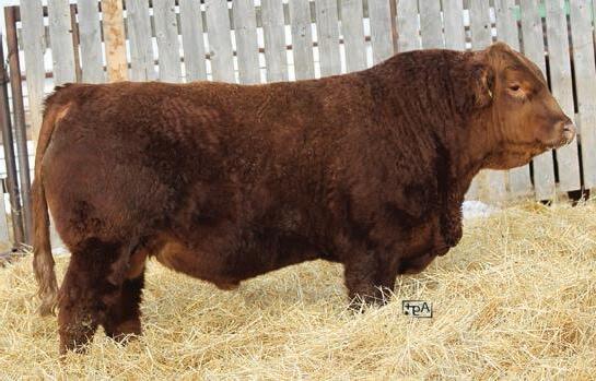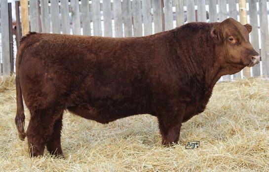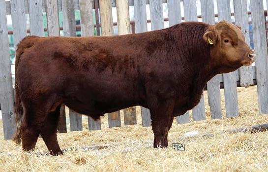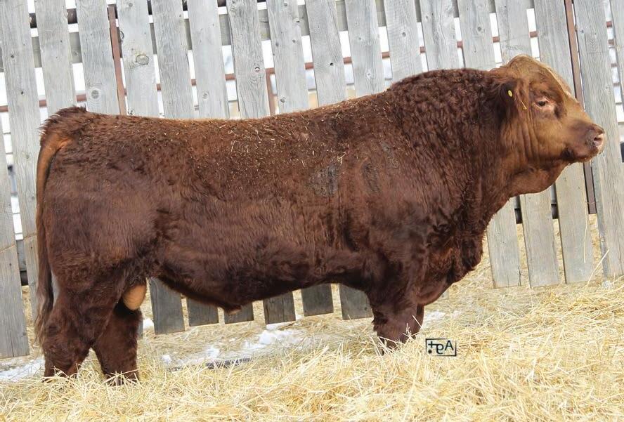 Homozygous Polled Dark, cherry red RF Patent 283K son from a WHL Red Heat 1734E dam. Thickbodied and moderate. 5 stars for hair, muscle and disposition. Favourable Residual Feed Intake (RFI).