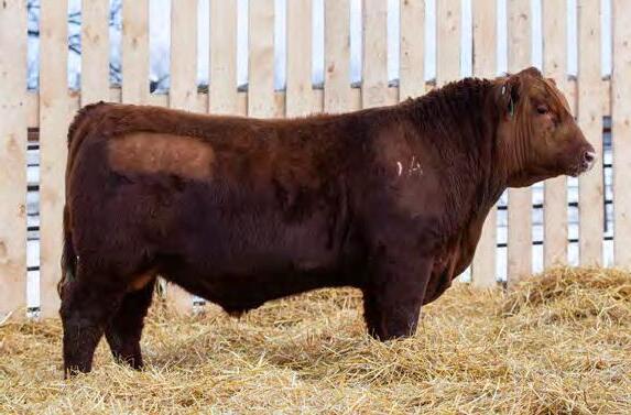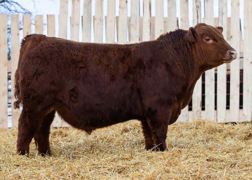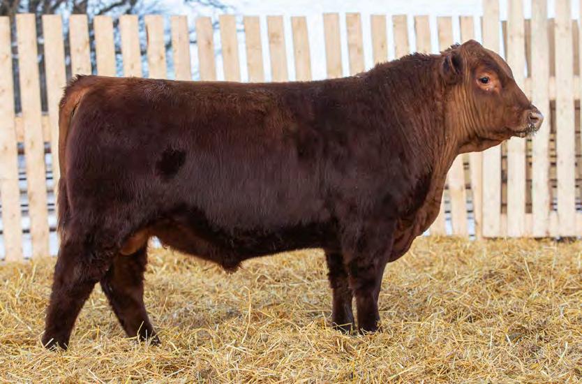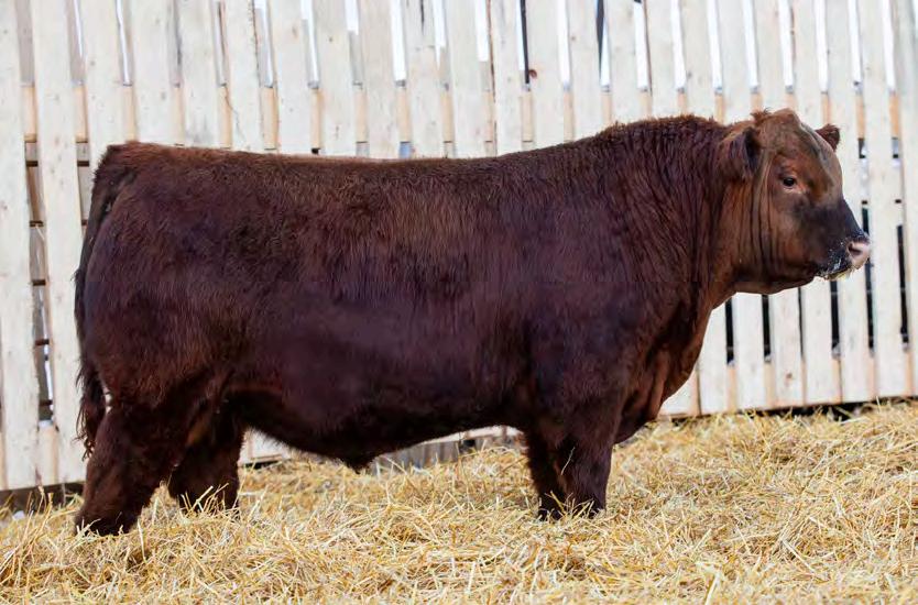 Lot 18 patterns very similar to his brother Washington. If you are looking to add performance make sure to give him special consideration. His dam is a direct daughter out of 13B and Big Shot 118E. She is dark red is one of our larger framed young cows.
