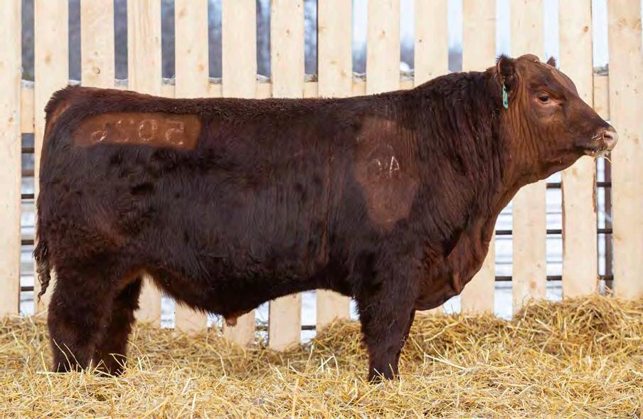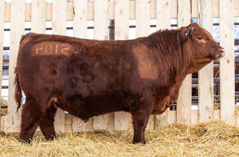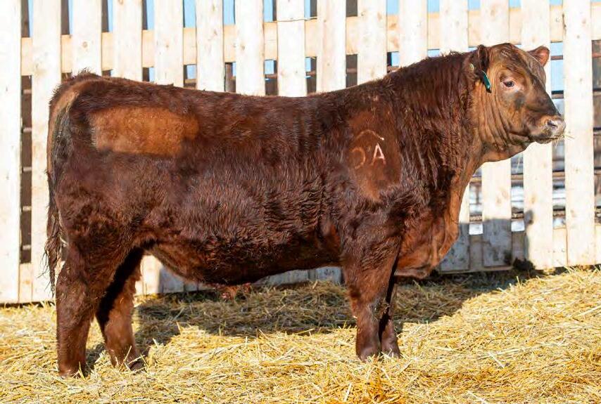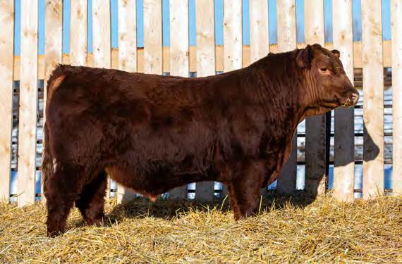 Red ACC Targaryen 110N will find many friends come sale day! He’s dark red, has some calving ease for the heifer pen and his mom is one of our top Red Angus Cows. She is the dam of the Female we showed last fall at Ag Ex and Agribition. Her 2024 heifer calf is also in our bred heifer pen and patterns very similar to 169L. With that kind of consistency we believe deeply in the quality of 110N.