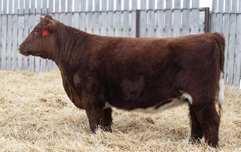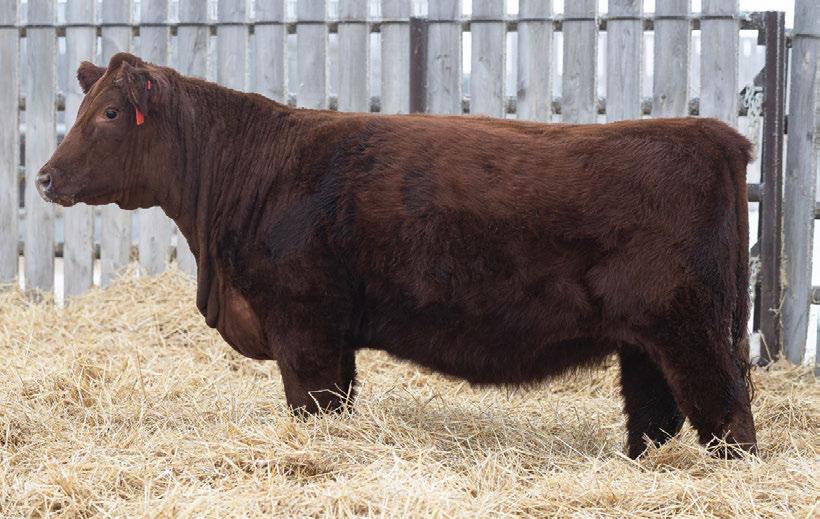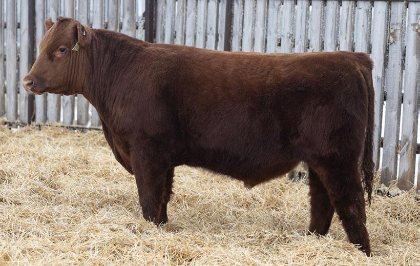 A powerful long spined, thick made heifer out of a very consistent producing cow. 100% SHORTHORN