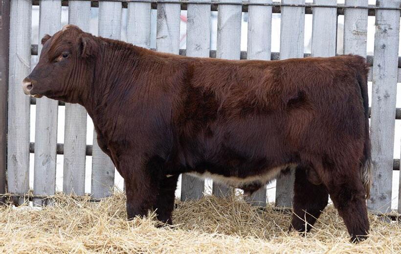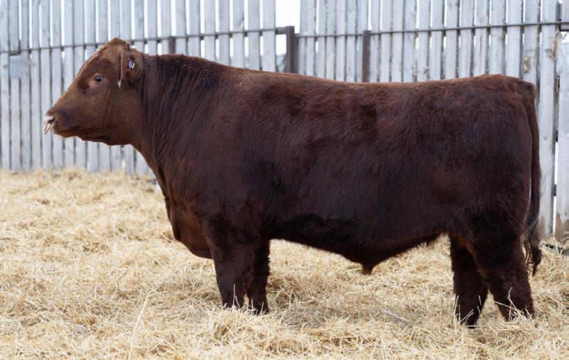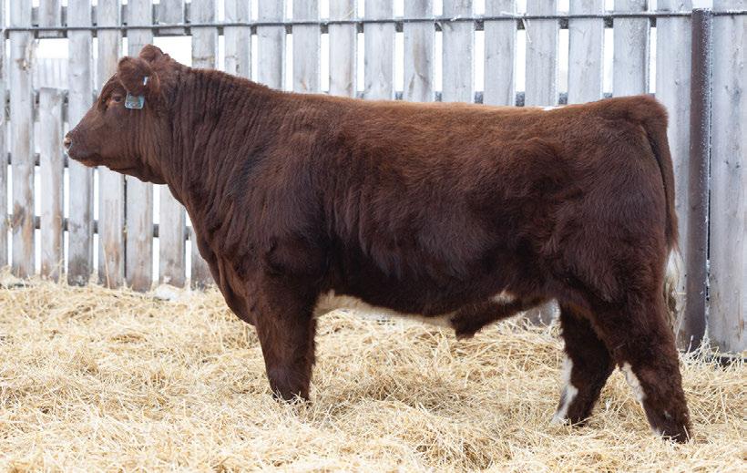 A moderate framed, deep bodied, thick made, square hipped power house. His mother is one of the best cows in the herd. 100% SHORTHORN