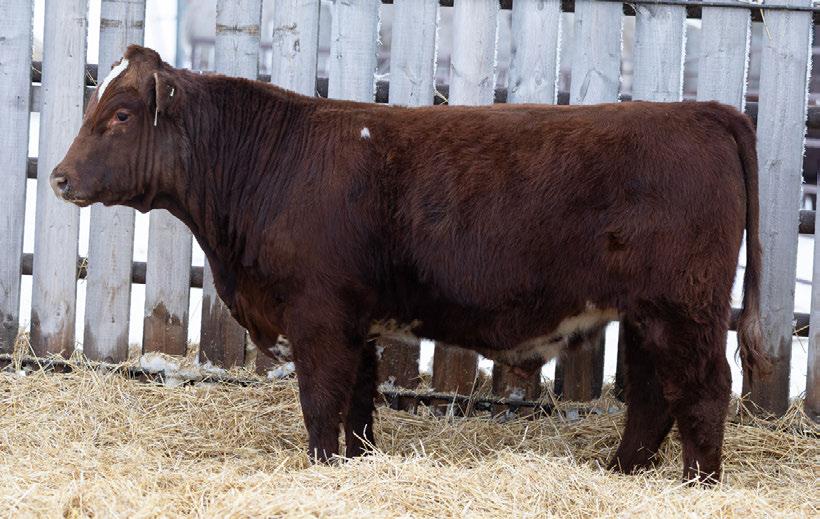 This stylish bull has been a favorite since birth. He’s got muscling and length to him, and comes from a moderate framed cow family. 100% SHORTHORN