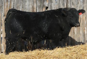 This bull reminds me of Code Black- he’s filling outjust like him, with impressive muscle and thickness. He’s quiet asa-’puppy, long-bodied, and big-footed, built for both power and soundness. Sired by DJS Beast on the top side and a grandson of one of our standout older cows, Miss Ronsko JOR69D, he comes from a lineage known for producing exceptional calves. With his combination of structure, temperament and genetics, he’s a promising herd sire in the making. We showed this guy at Farm Fair in Edmonton. Weight of gain 4.631bs on a 95 day feed program.