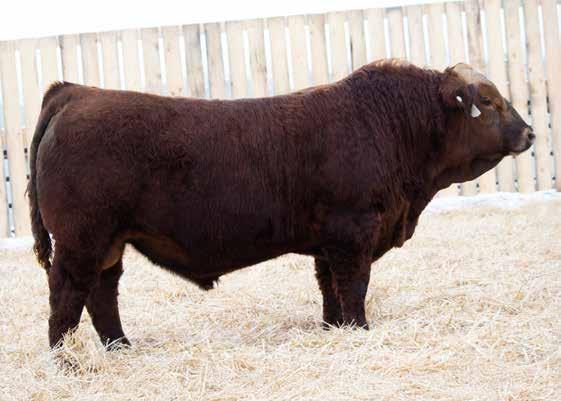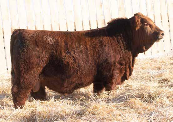HOMO POLLED. PUREBRED. Another Big Red son who adds power and thickness! Another good individual off a black baldie female that we purchased from the Quinn Wilson dispersal. If you see the Robb bull in person, you would really appreciate him for his extra hair coat, his overall softness, and the feet underneath him. 109N has that extra swagger about him and is stellar when you analyze him in the pen. Deep ribbed, super soft made, these Big Reds I will add some thickness! Use this one on some Angus or Simmental females and you’ll be keeping every daughter and making steers that will do very well in a feedlot scenario. 2